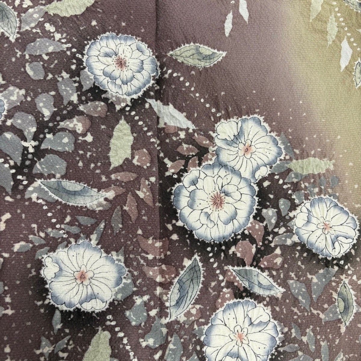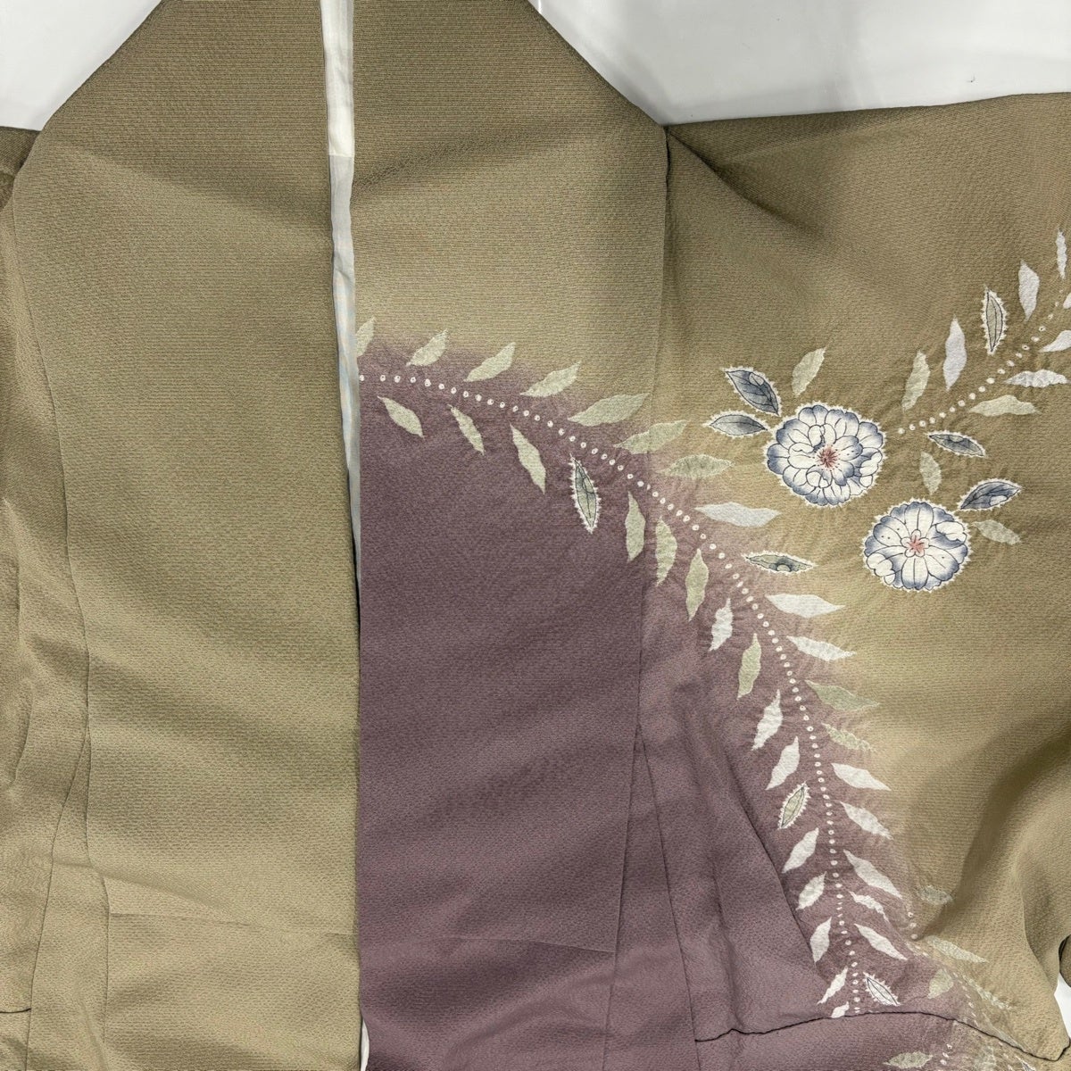 訪問着 身丈160cm 裄丈66cm M 袷 辻が花 葉柄 染め分け ぼかし 灰紫 正絹 名品