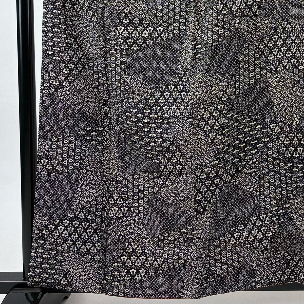 小紋 身丈160cm 裄丈63.5cm S 袷 総絞り 黒 正絹 秀品