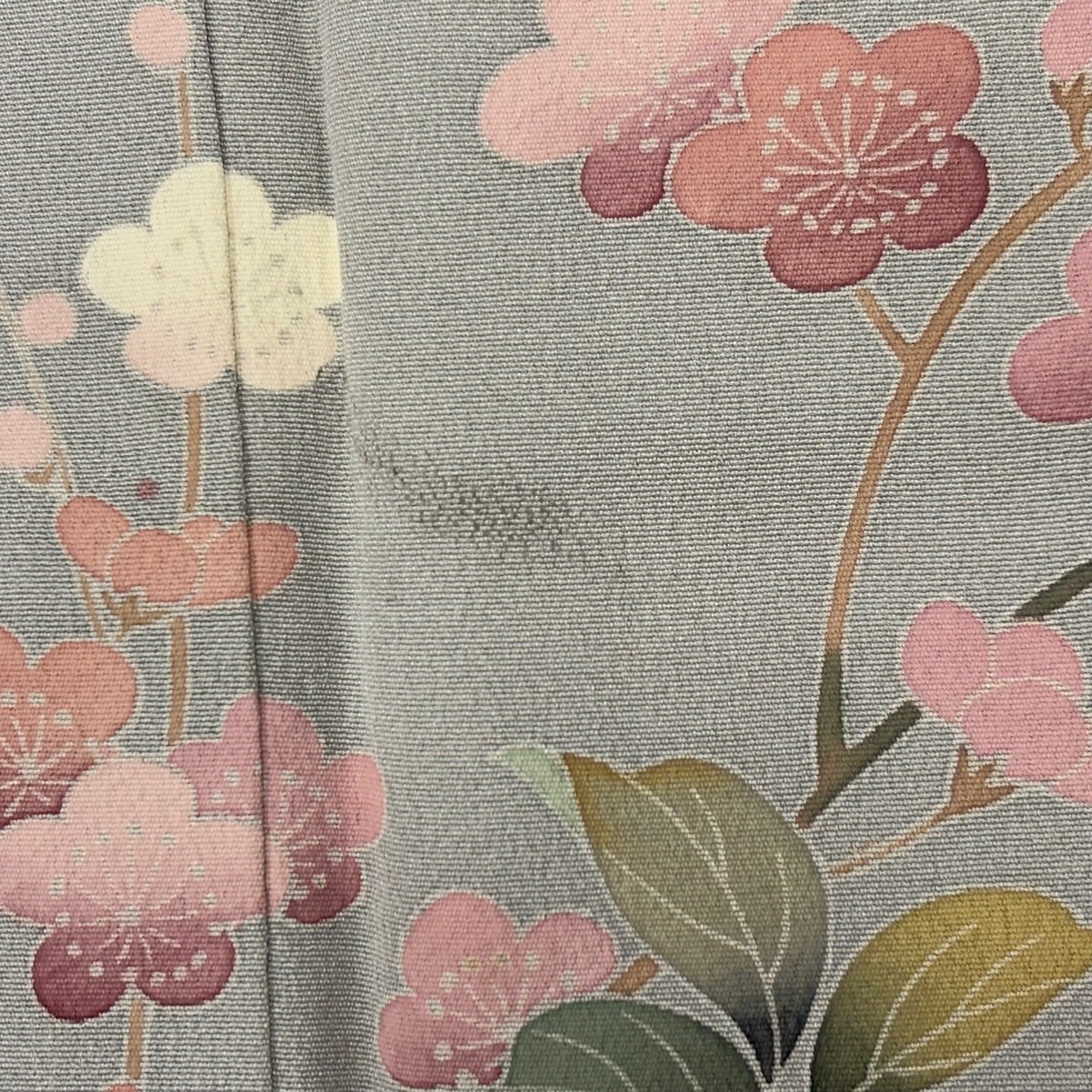 付下げ 身丈152cm 裄丈64cm M 袷 枝花 ぼかし 灰紫 正絹 秀品 一つ紋