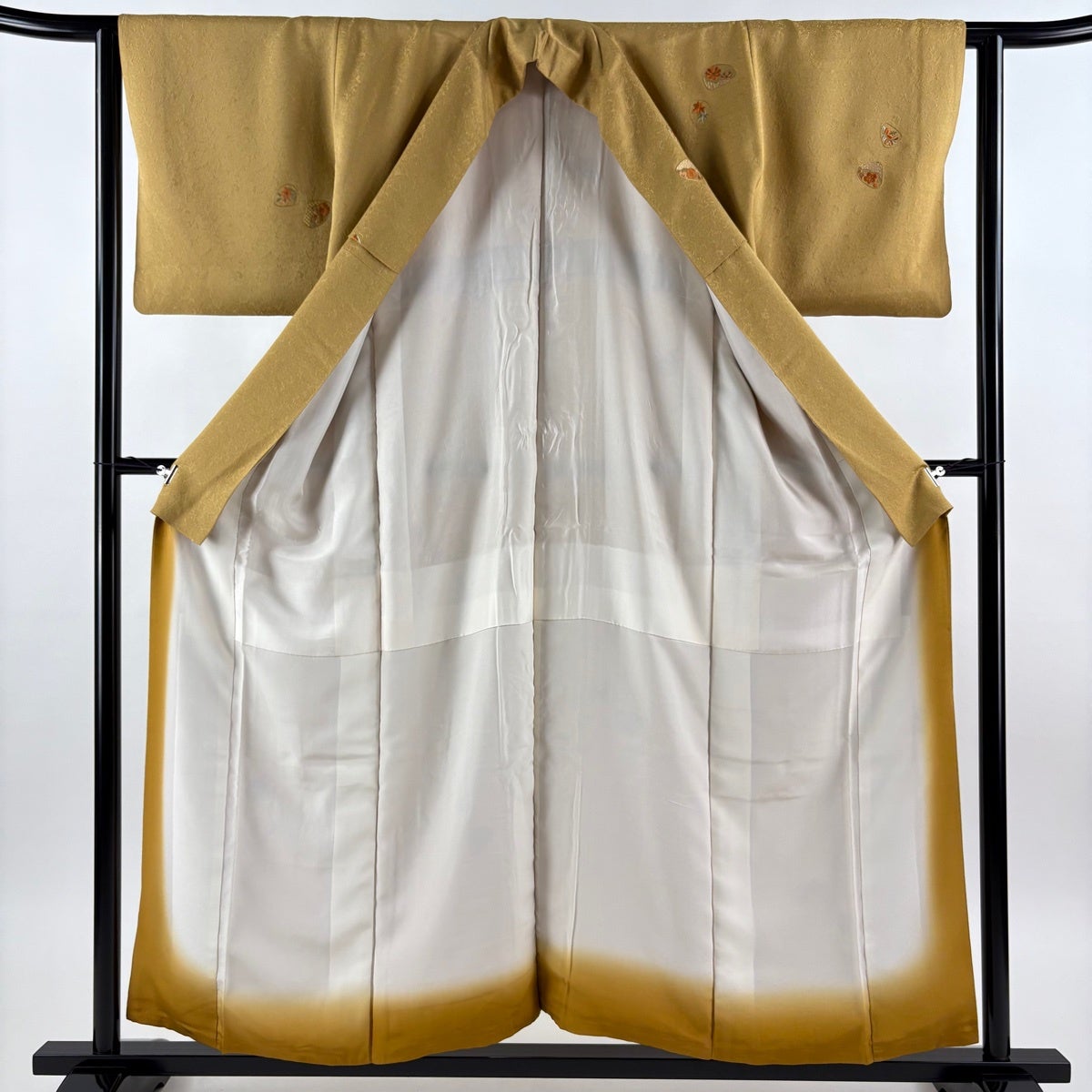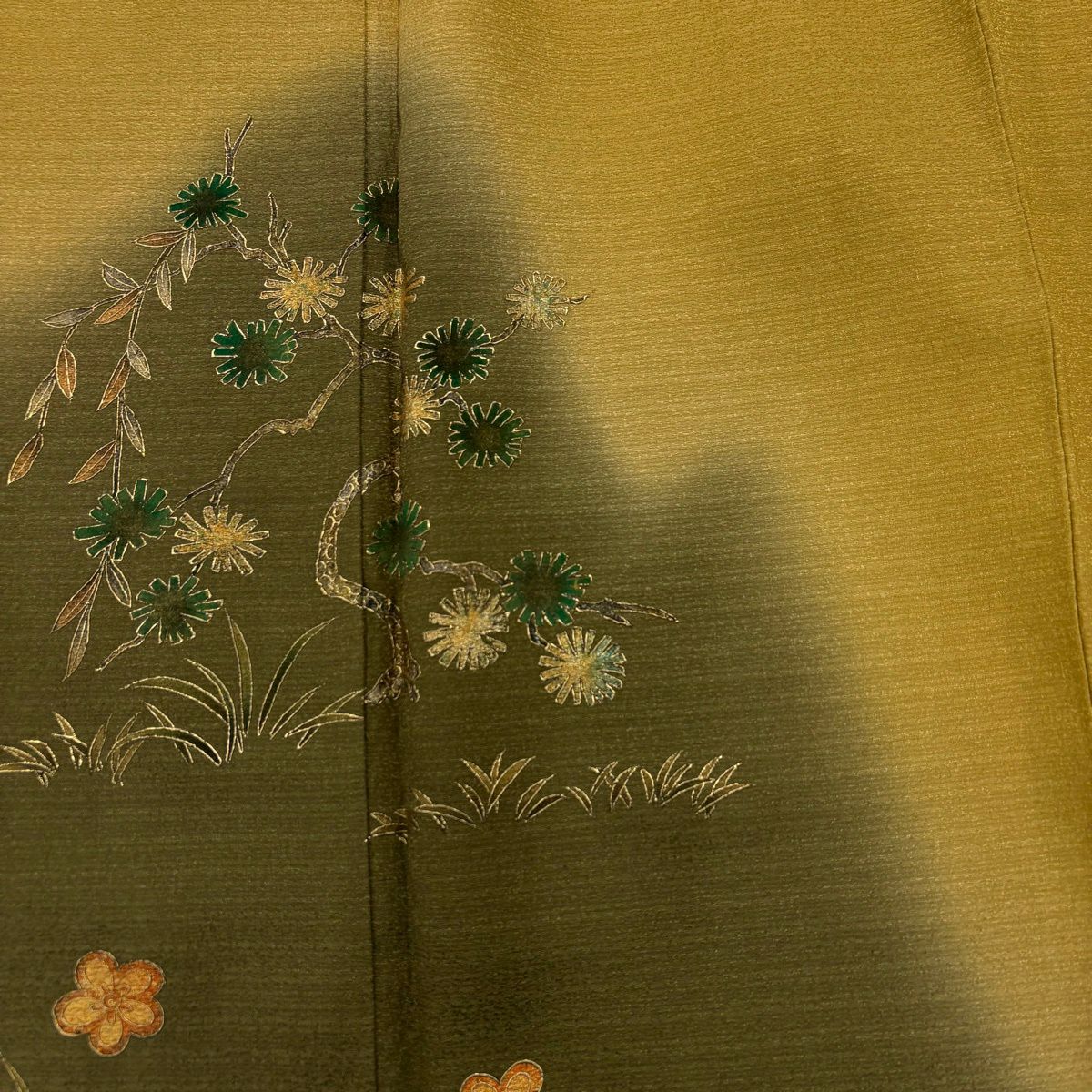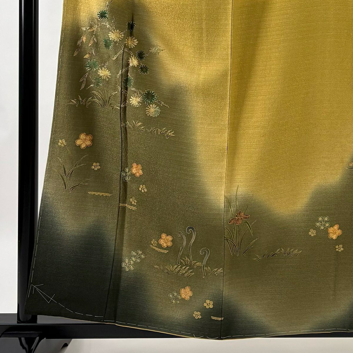 付下げ 身丈161cm 裄丈66cm M 袷 薔薇 金彩 染め分け 鶯色 正絹 名品