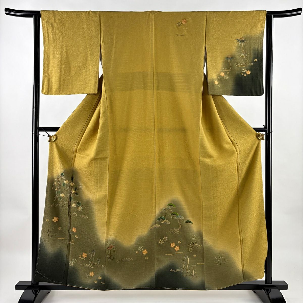 訪問着 身丈166.5cm 裄丈65cm M 袷 松竹梅 波 ぼかし 鶯色 正絹 秀品