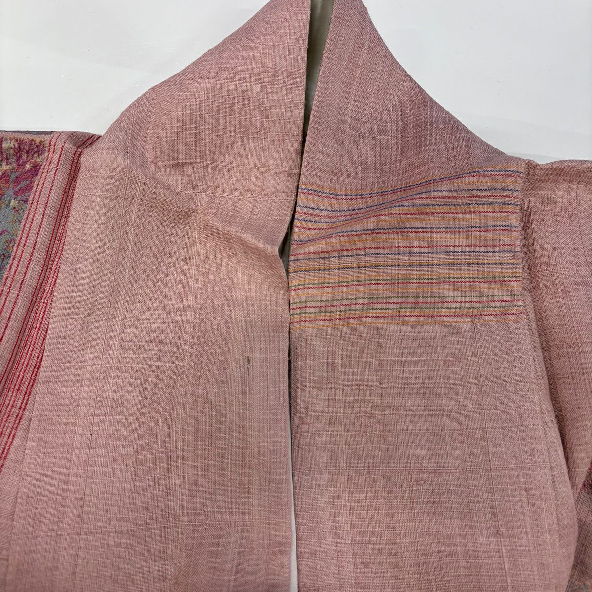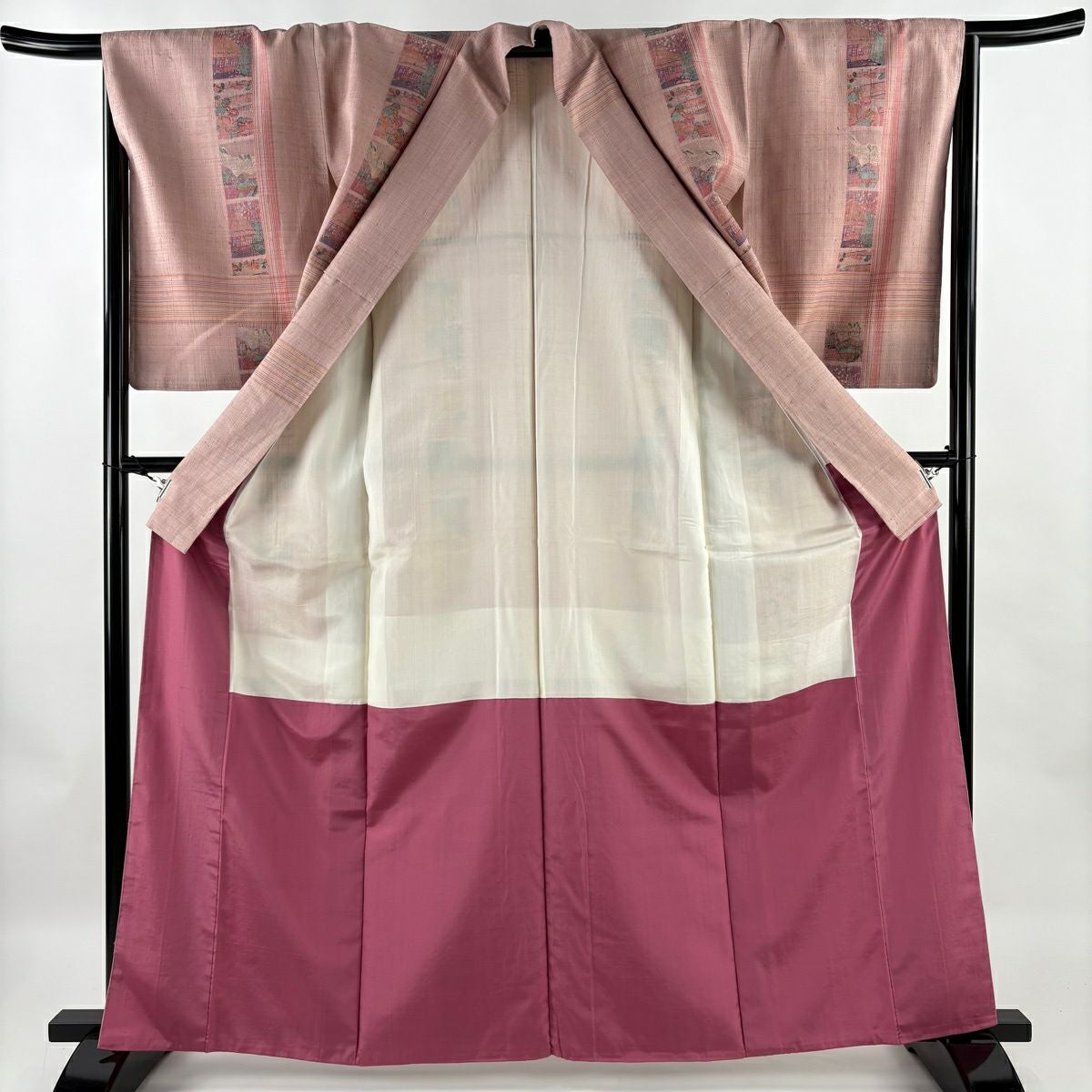 付下げ 身丈162cm 裄丈64cm M 袷 華文 刺繍 縮緬 ピンク 正絹 秀品
