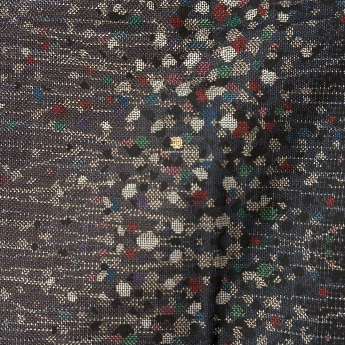 男着物 身丈144.5cm 裄丈67cm M 袷 紬地 幾何学模様 紺色 正絹 秀品