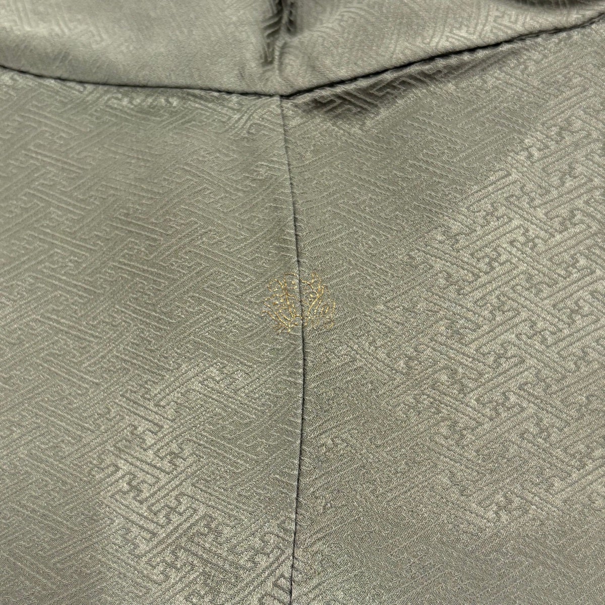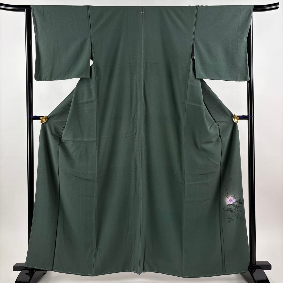 色無地 身丈162cm 裄丈66cm M 袷 落款あり 地紋 灰緑 正絹 優品 一つ紋