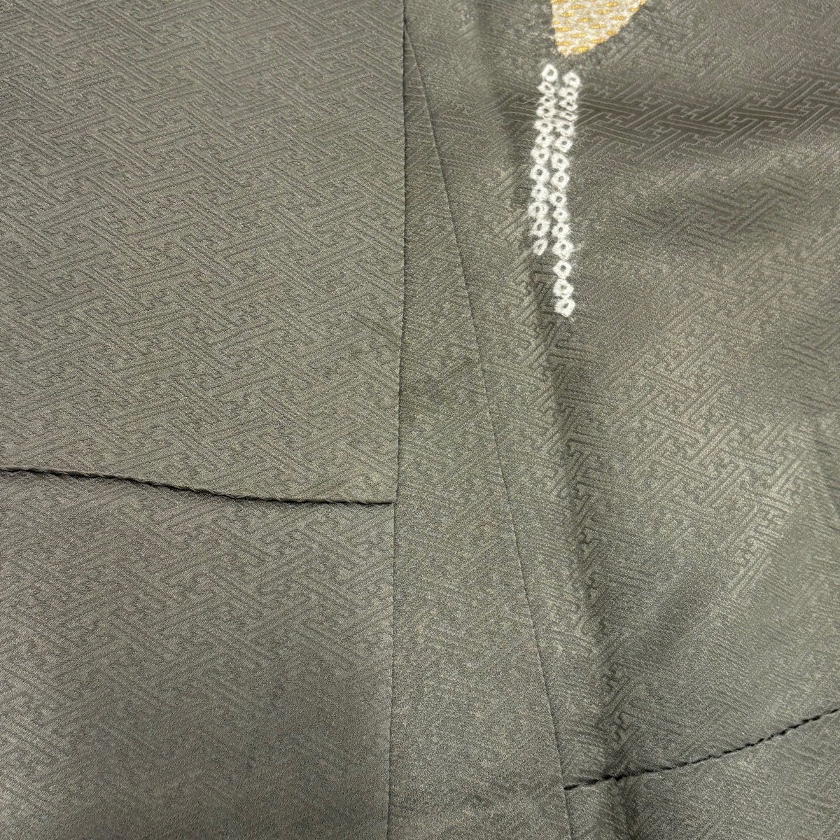振袖 身丈165cm 裄丈69cm L 袷 笠松 雲文 金通し 金彩 茶緑色 正絹 逸品