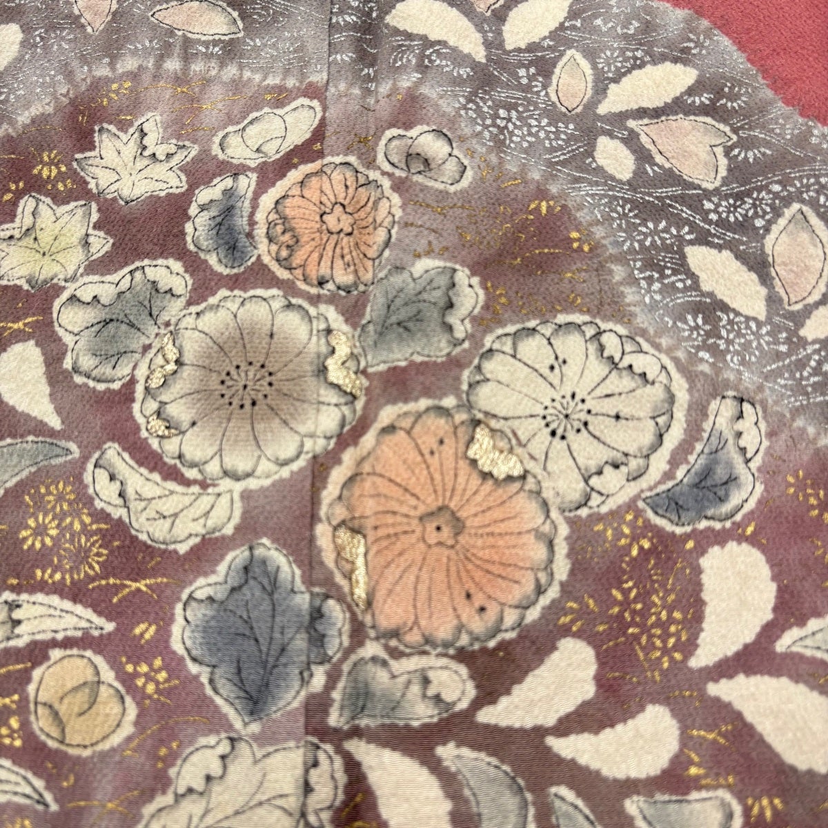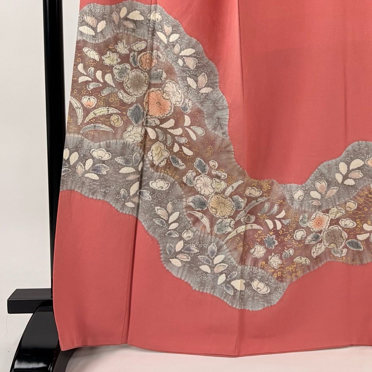 付下げ 身丈158cm 裄丈63cm S 袷 文箱 短冊 金糸 刺繍 茜色 正絹 秀品