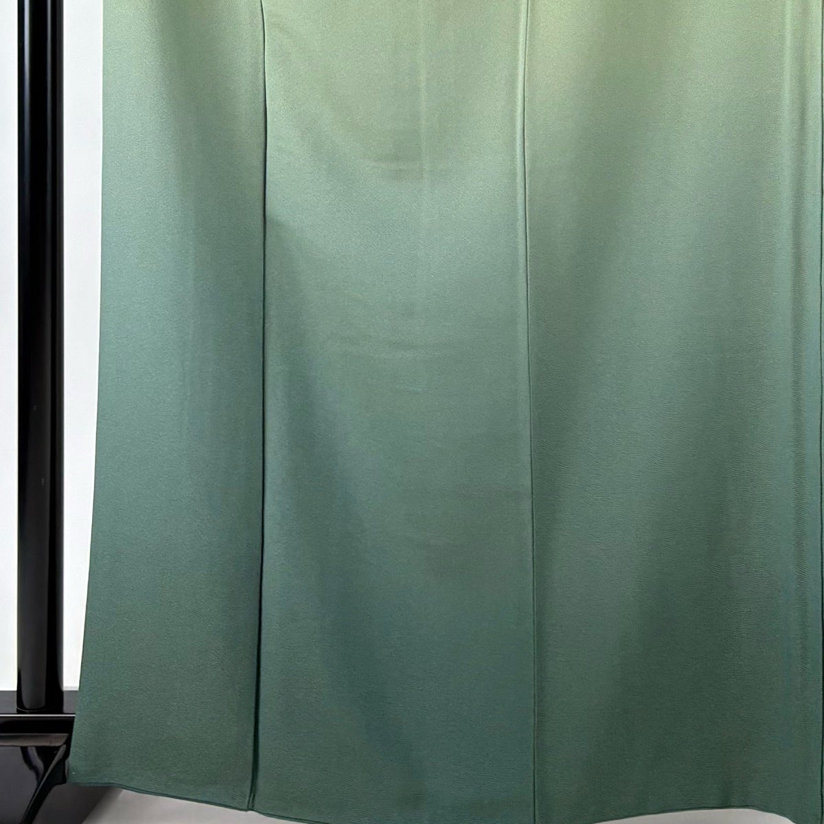 付下げ 身丈158cm 裄丈64cm M 袷 地紋 ぼかし 茶緑色 正絹 秀品 一つ紋