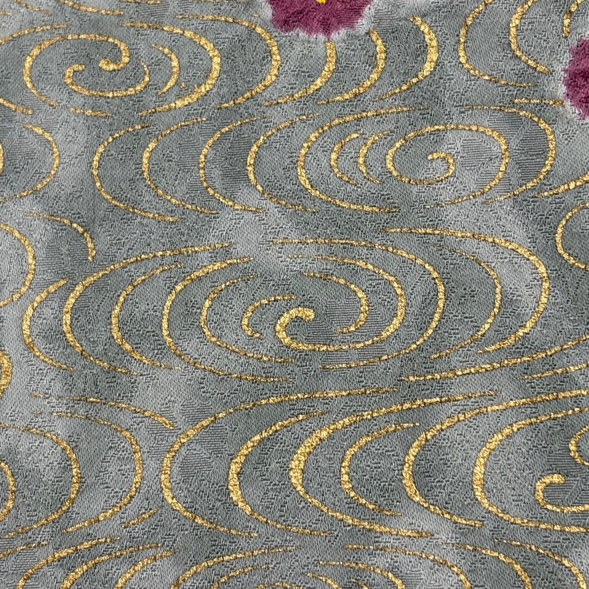訪問着 身丈168cm 裄丈68cm L 袷 草花 金彩 絞り 青灰色 正絹 名品 一つ紋