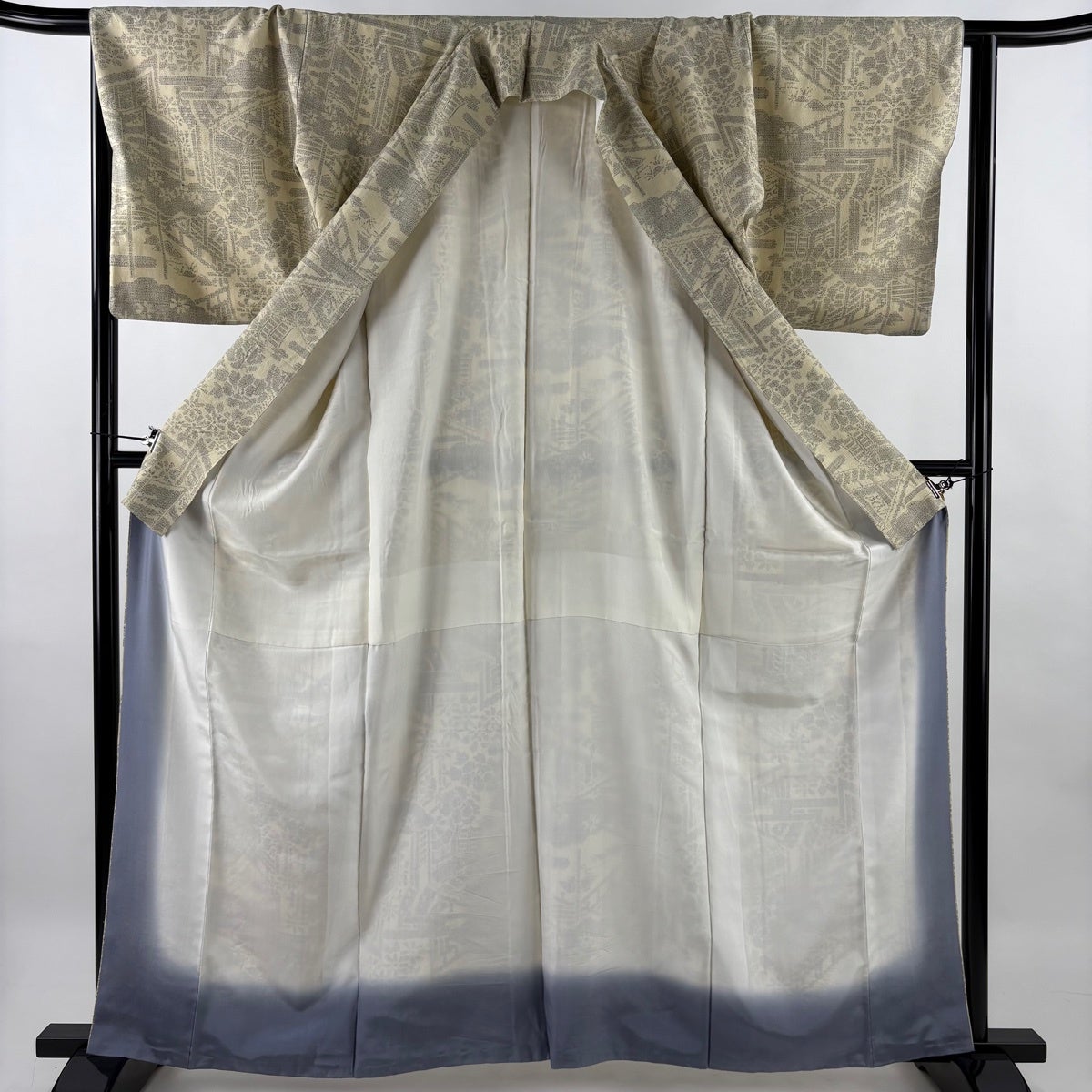 付下げ 身丈173.5cm 裄丈64cm M 袷 扇 波 金糸 箔 クリーム 正絹 秀品 一つ紋