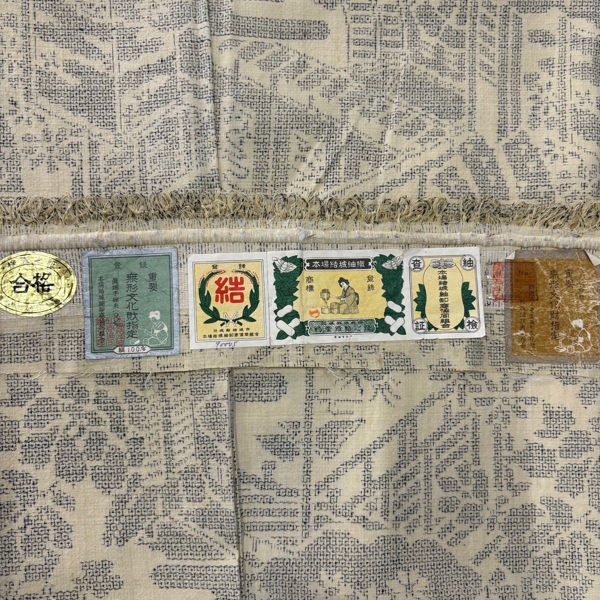 結城紬 身丈164cm 裄丈66cm M 袷 本場結城紬 奥順 草花 雲文 ベージュ 正絹 逸品