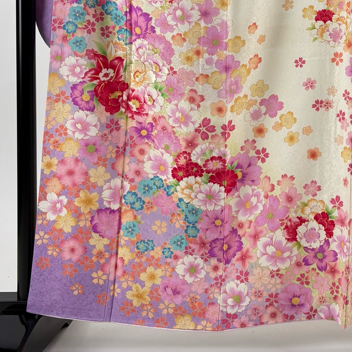 【美品】 振袖 身丈162cm 裄丈66cm M 袷 草花 桜 金彩 刺繍 クリーム 正絹 名品