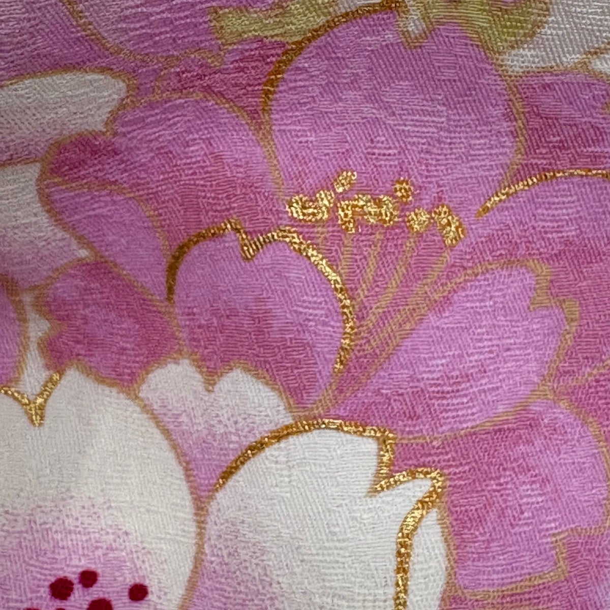 振袖 身丈151.5cm 裄丈64cm M 袷 糸巻き 桜 金彩 染め分け ピンク 正絹 名品