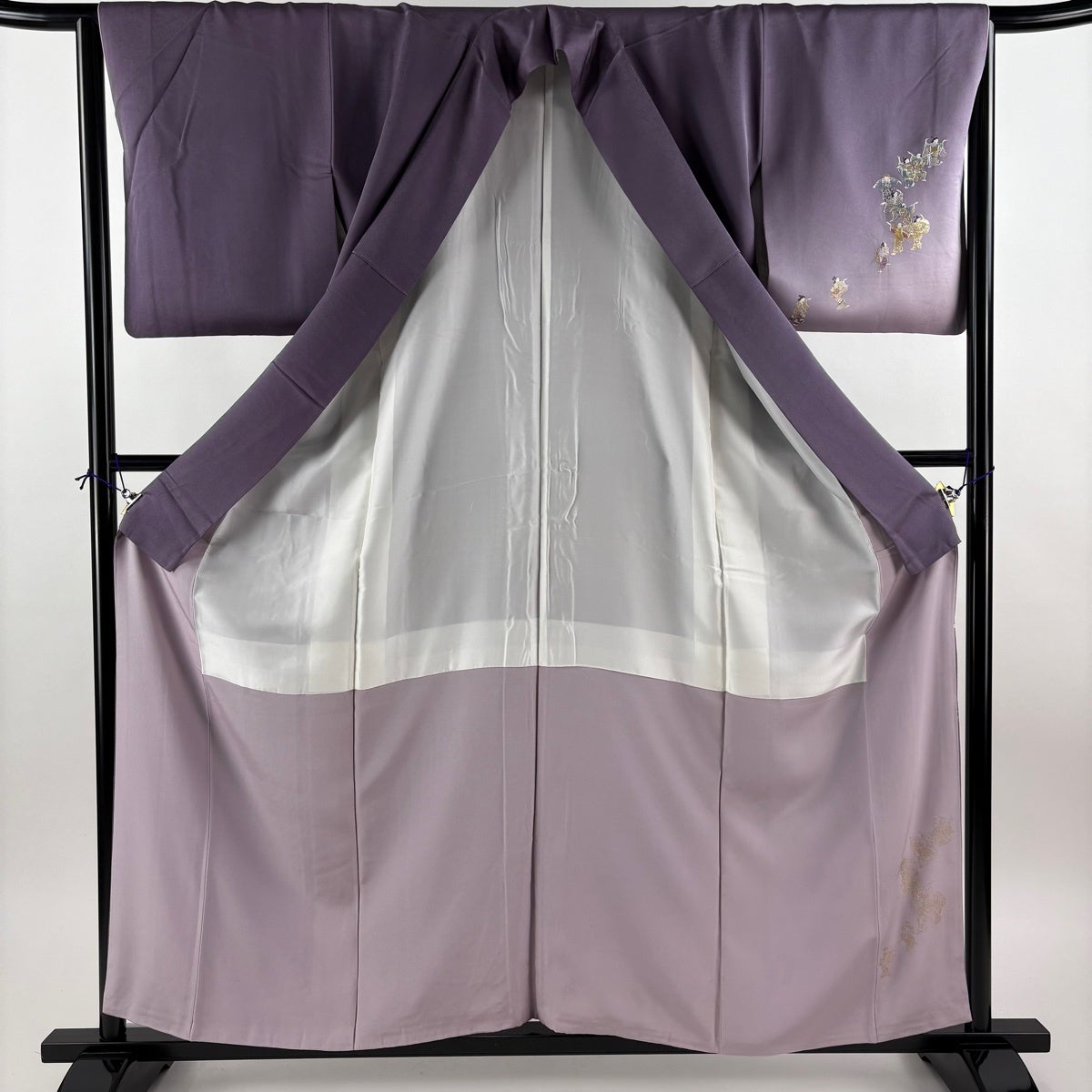 訪問着 身丈155.5cm 裄丈63.5cm S 袷 狩猟文 草花 刺繍 灰紫 正絹 秀品