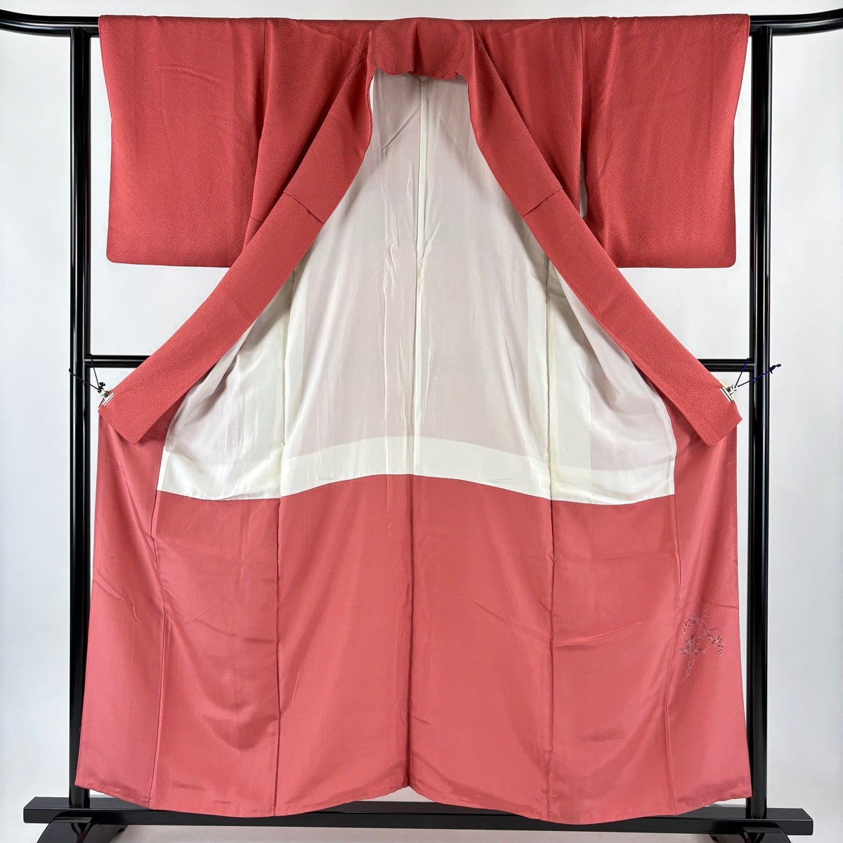 小紋 身丈151.5cm 裄丈65cm M 袷 紬地 茜染め 七宝 絞り 茜色 正絹 逸品