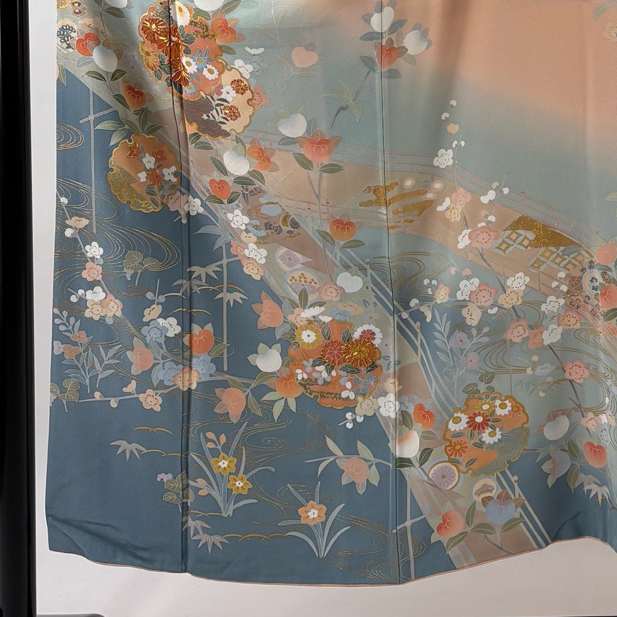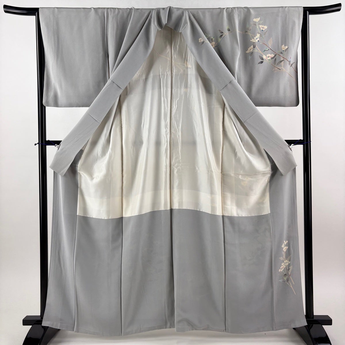 訪問着 身丈154cm 裄丈64cm M 袷 花筏 草花 金彩 ぼかし 灰色 正絹 秀品