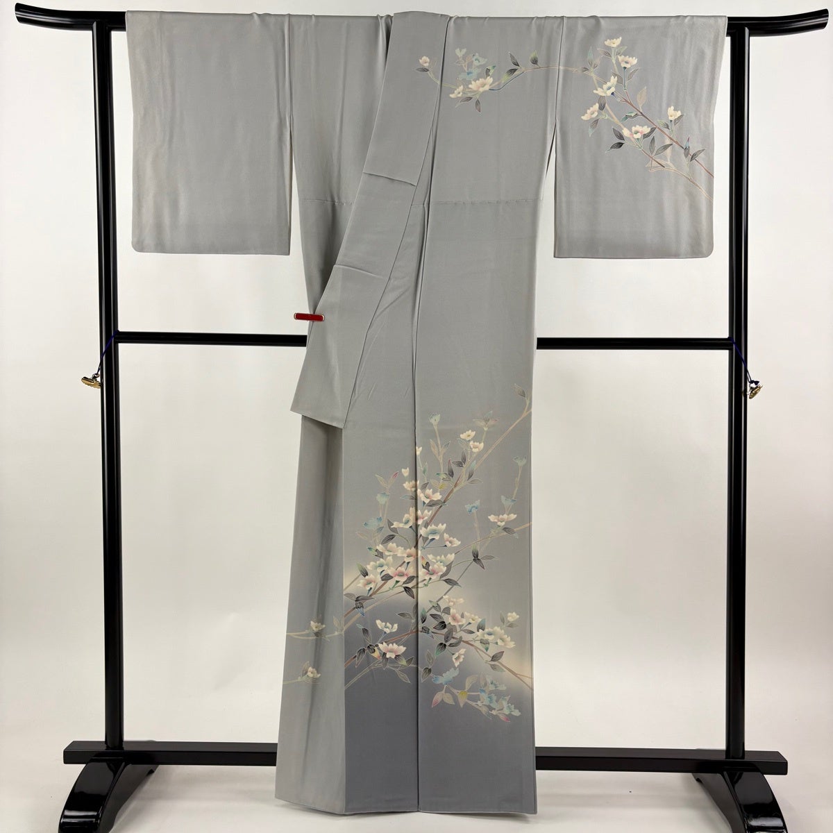 訪問着 身丈156cm 裄丈63cm S 袷 桜 霞 金銀彩 ぼかし 灰色 正絹 名品