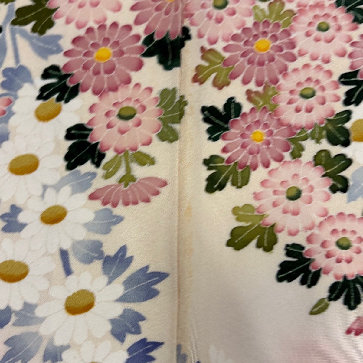 訪問着 身丈157.5cm 裄丈62.5cm S 袷 扇面 菊 金糸 金彩 灰緑 正絹 名品