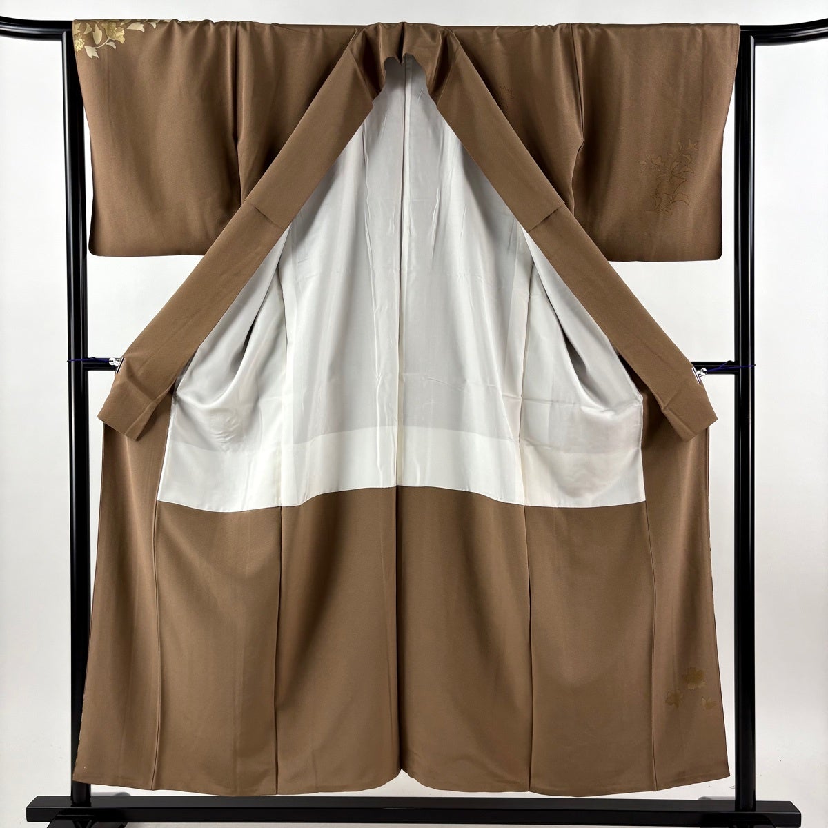 【美品】 紬 身丈161.5cm 裄丈65.5cm M 袷 華文 色紙 焦茶色 正絹 秀品
