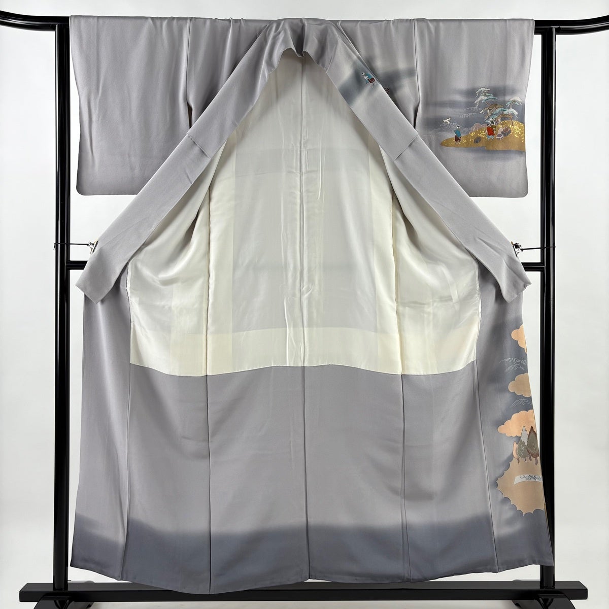 訪問着 身丈162.5cm 裄丈64.5cm M 袷 落款あり 雪輪 竹 灰色 正絹 名品