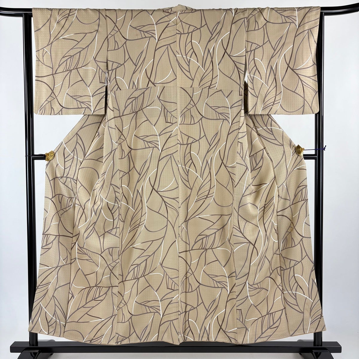 紬 身丈153.5cm 裄丈62cm S 袷 つばめ 幾何学 ベージュ 正絹 名品