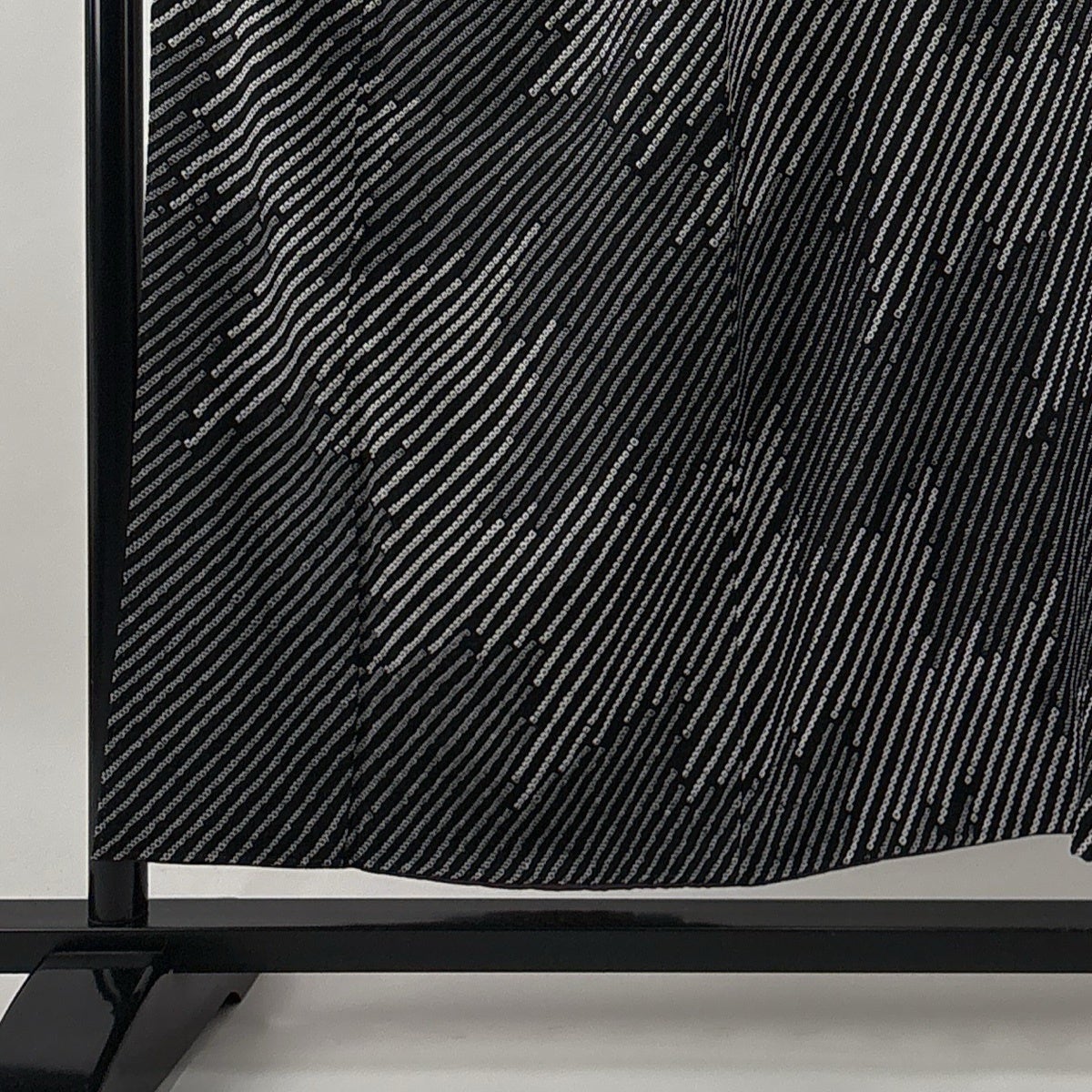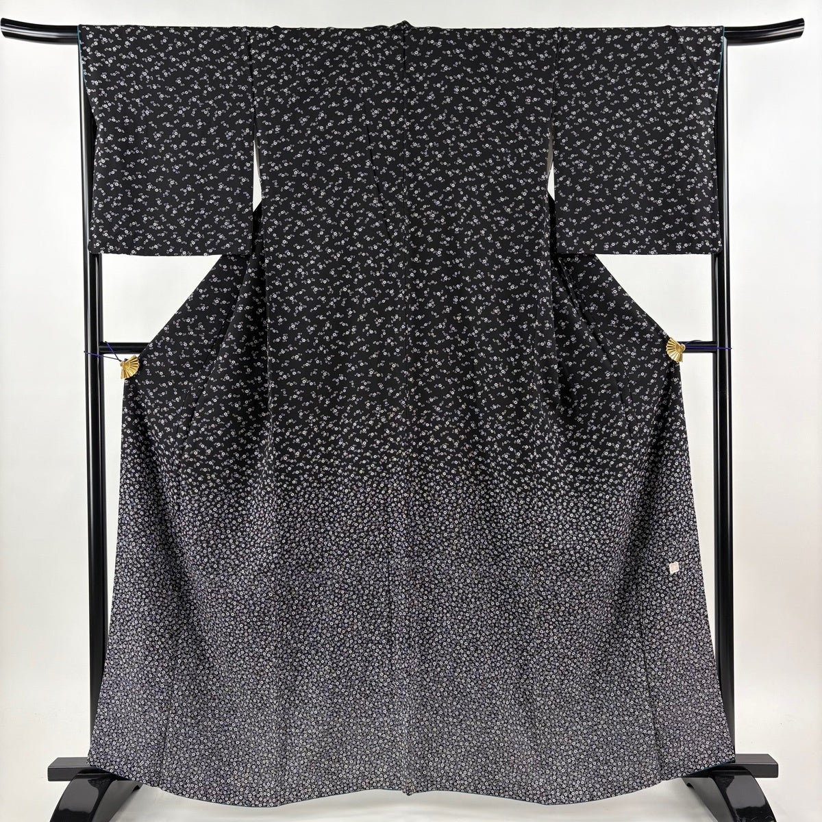 付下げ 身丈162cm 裄丈65cm M 袷 扇面 桜 刺繍 銀通し 黒灰 正絹 秀品