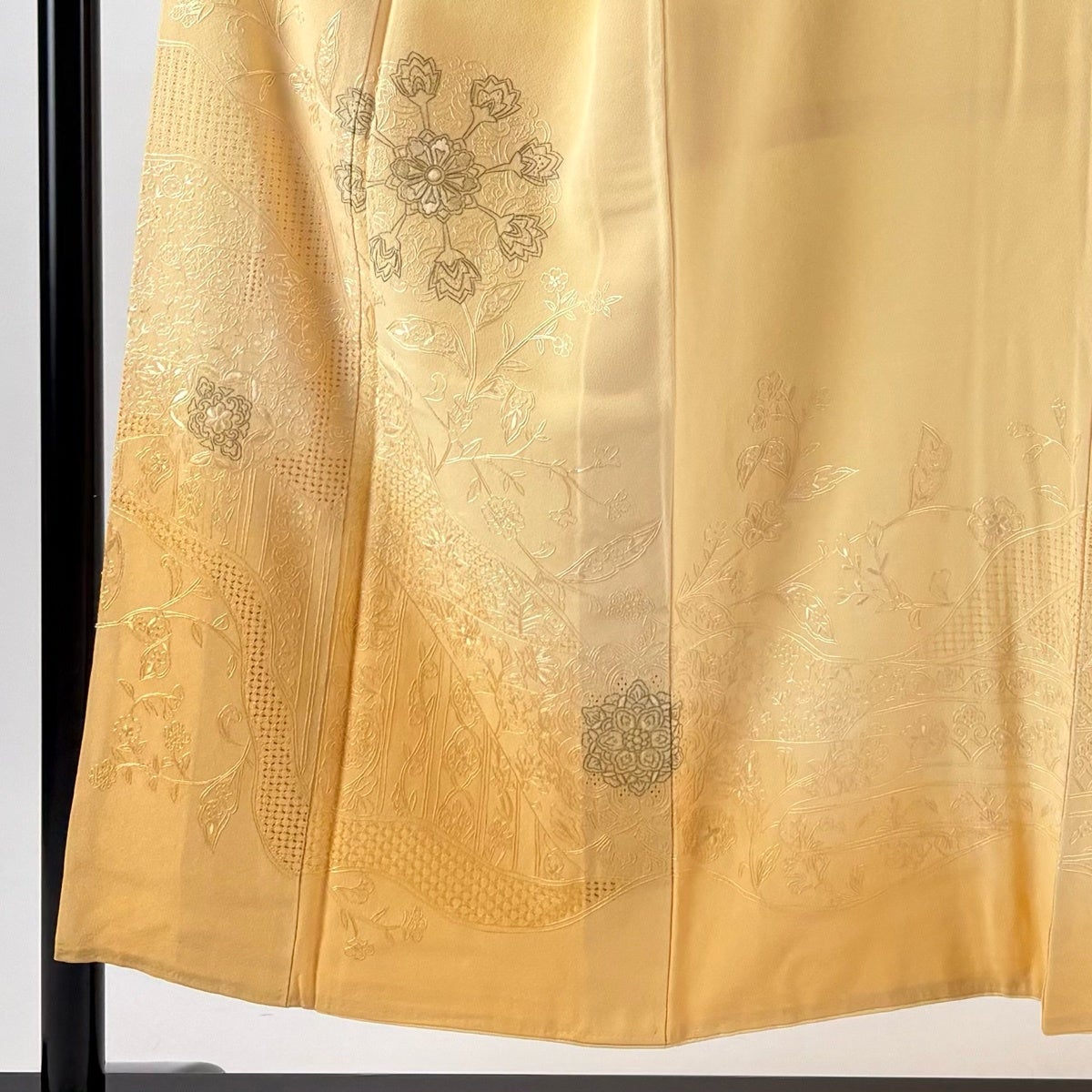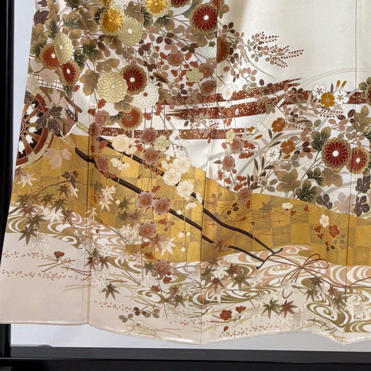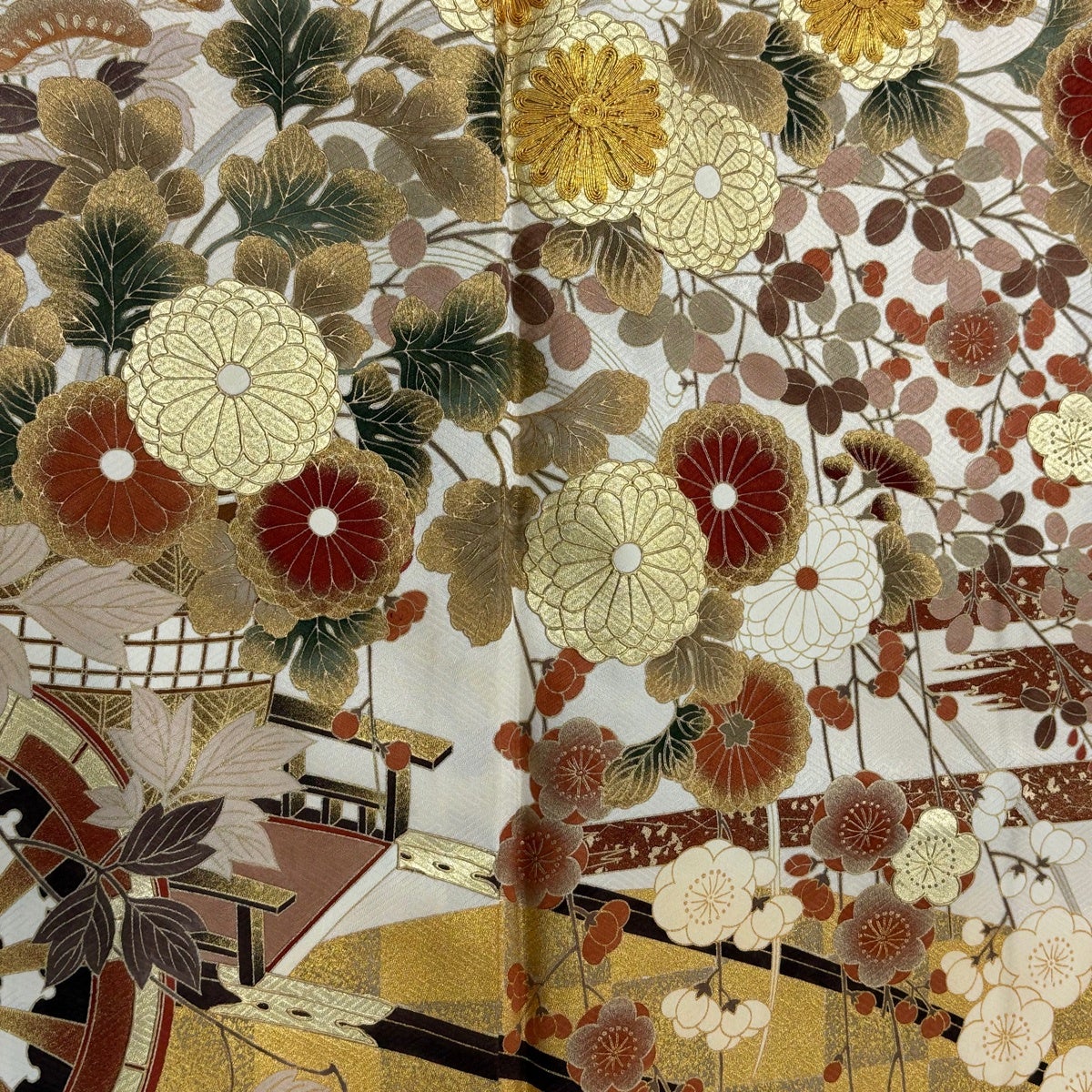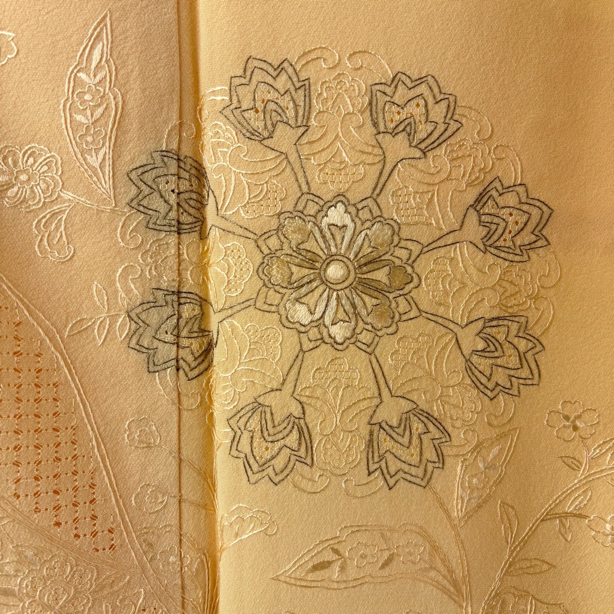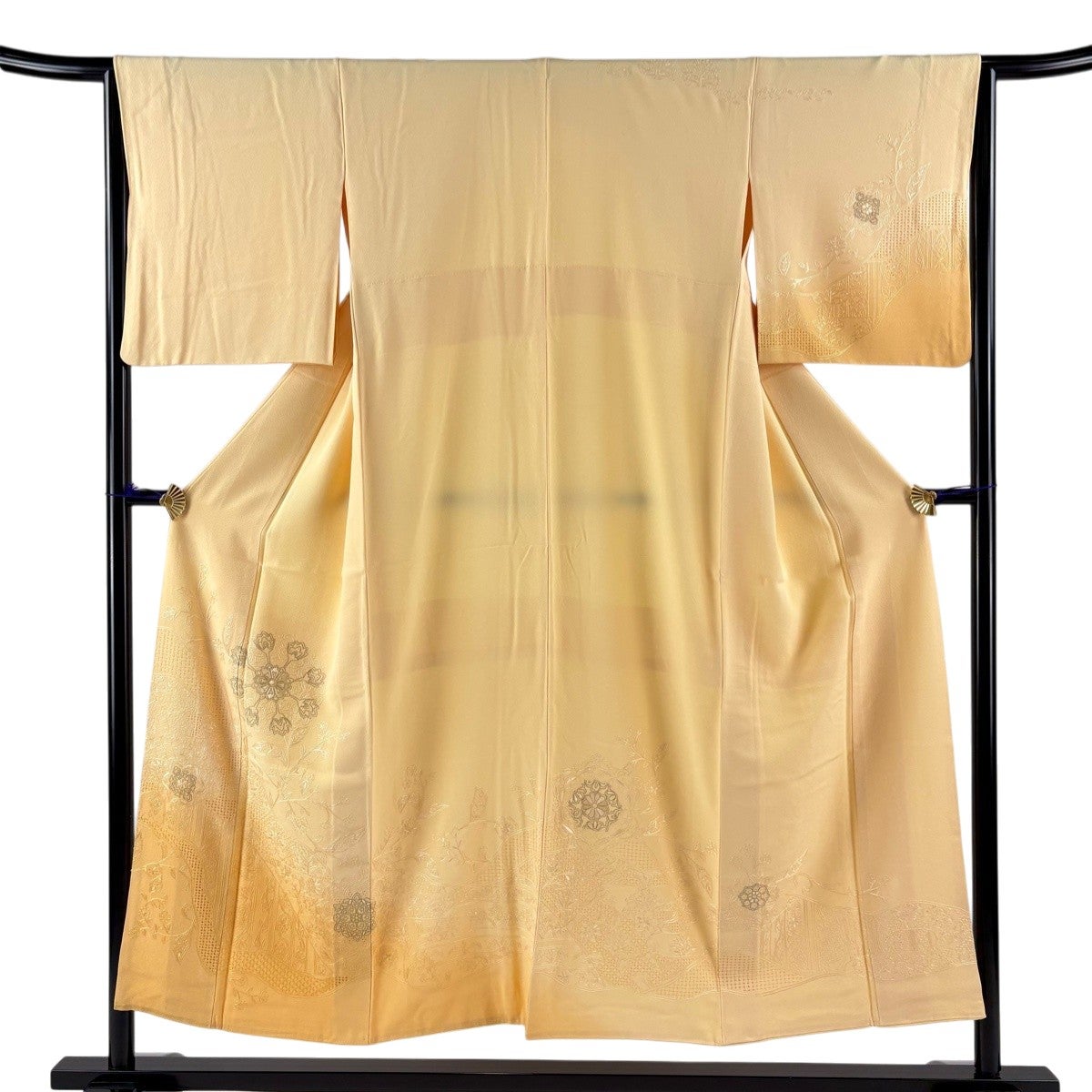 色留袖 身丈165cm 裄丈67cm M 袷 菊 熨斗 金糸 金銀彩 薄茶色 正絹 秀品