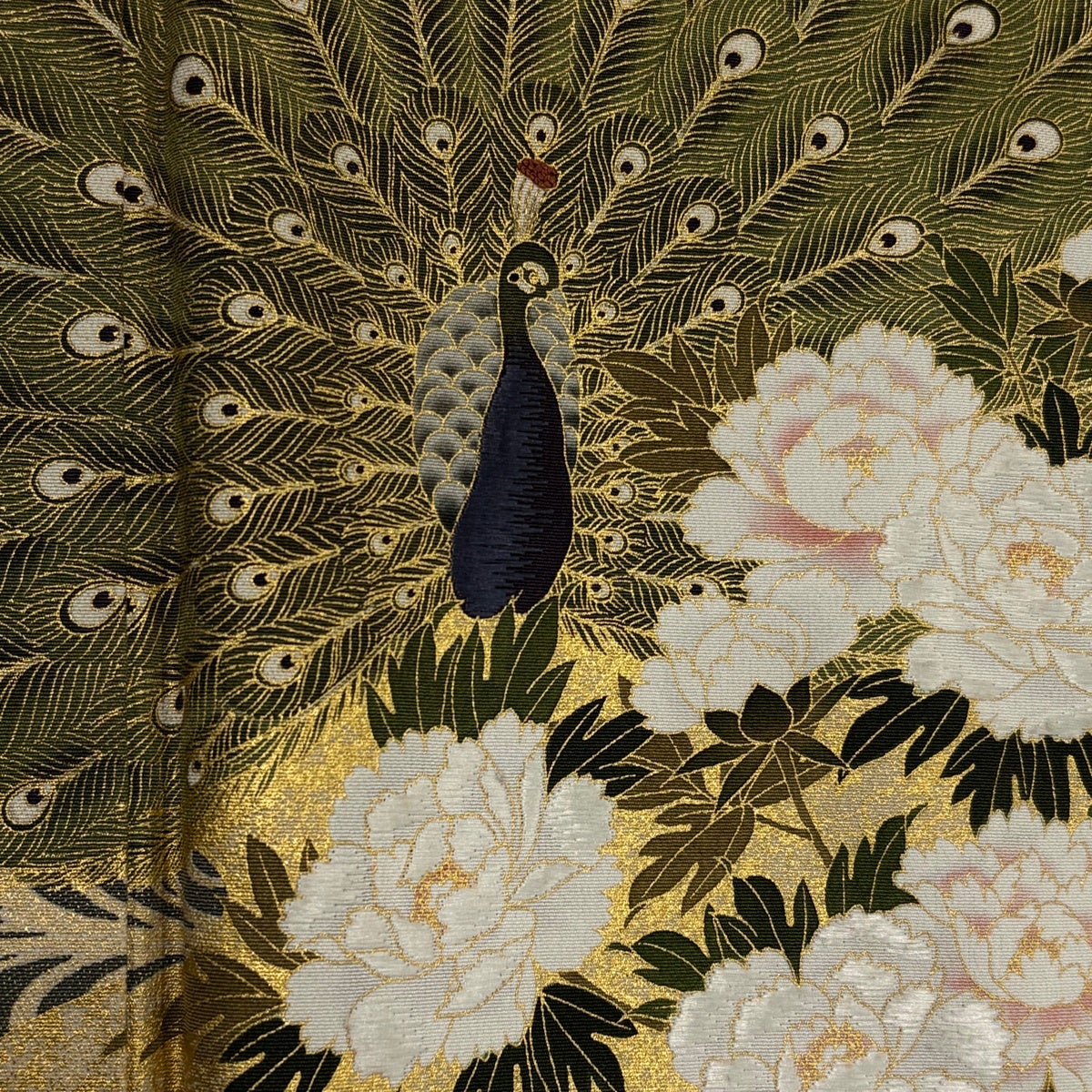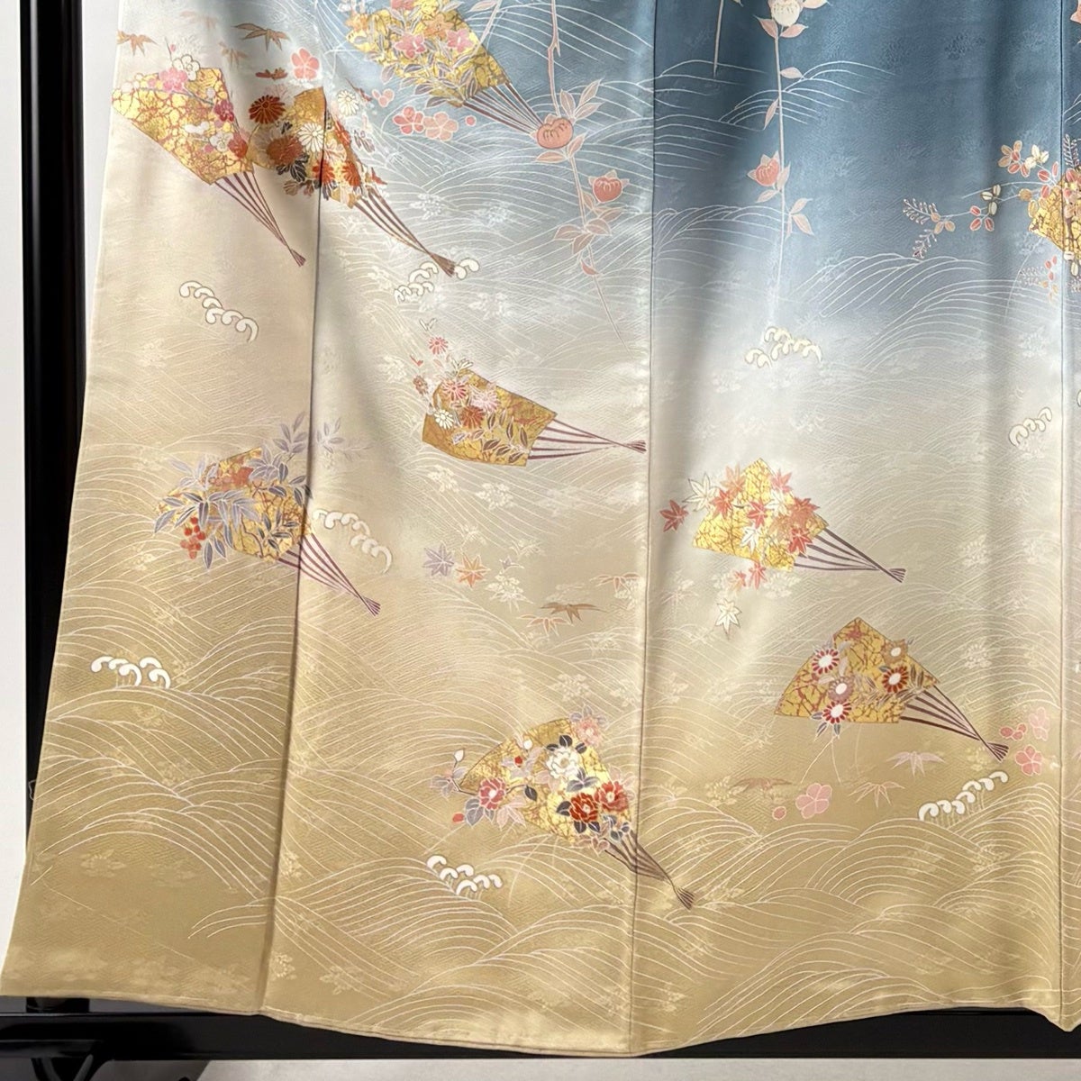 【美品】 振袖 身丈167cm 裄丈69cm L 袷 裾ぼかし柄 金通し 緑 正絹 名品