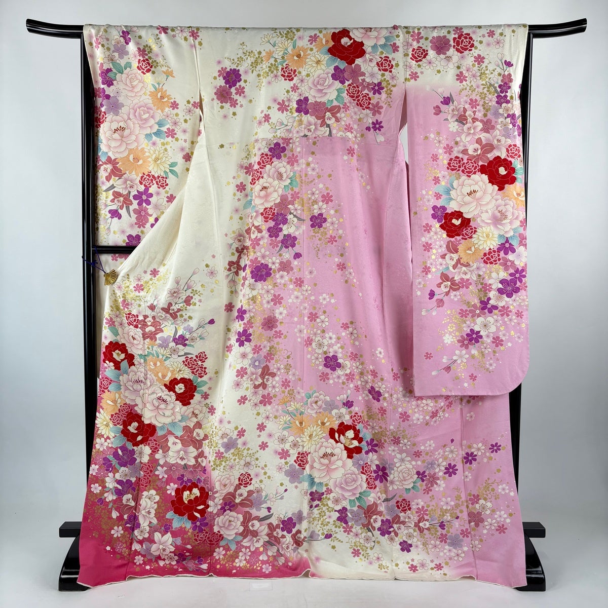 振袖 身丈164.5cm 裄丈69.5cm L 袷 桜 花びら ぼかし ピンク 正絹 秀品