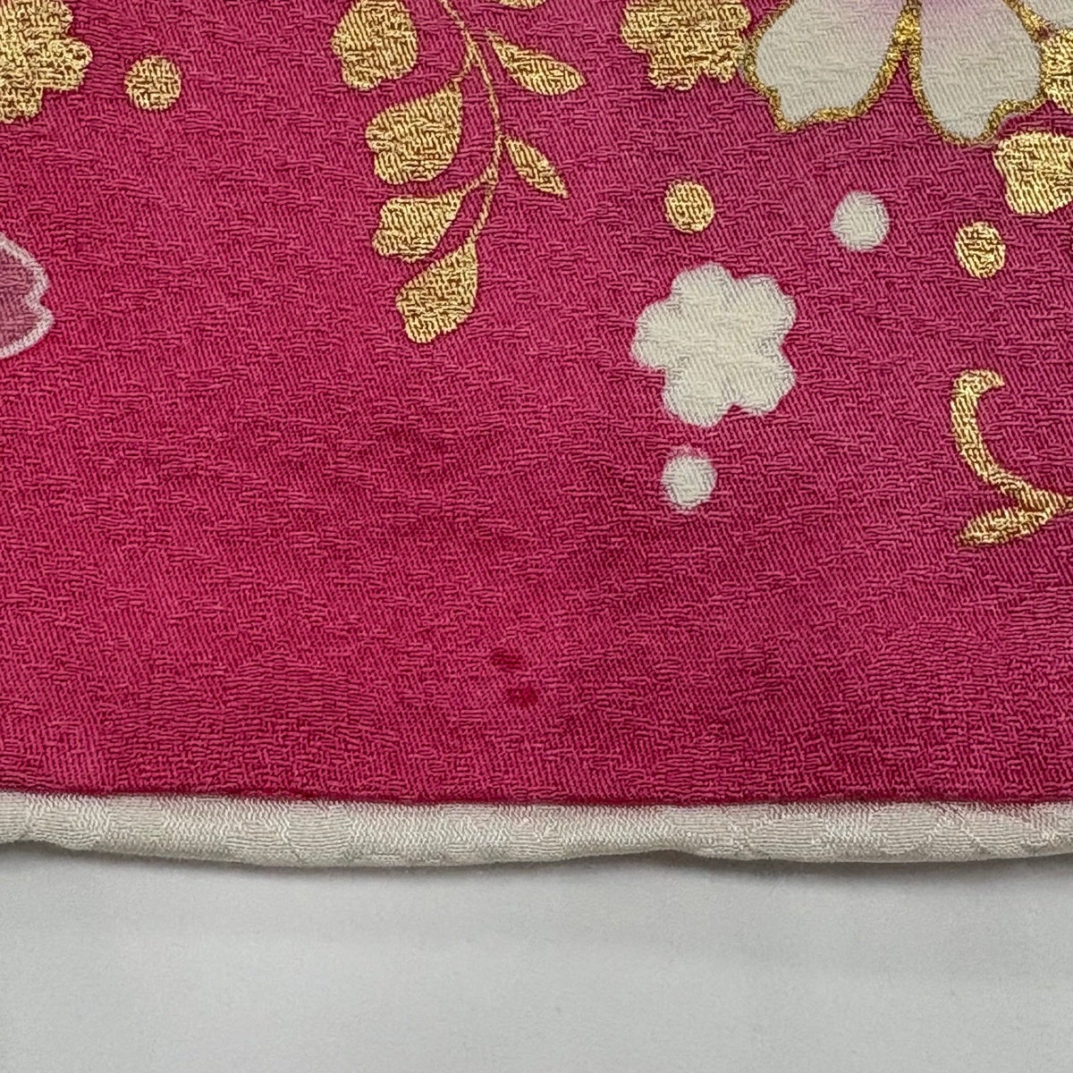 振袖 身丈158.5cm 裄丈66cm M 袷 桜 花びら 金彩 濃ピンク 正絹 秀品
