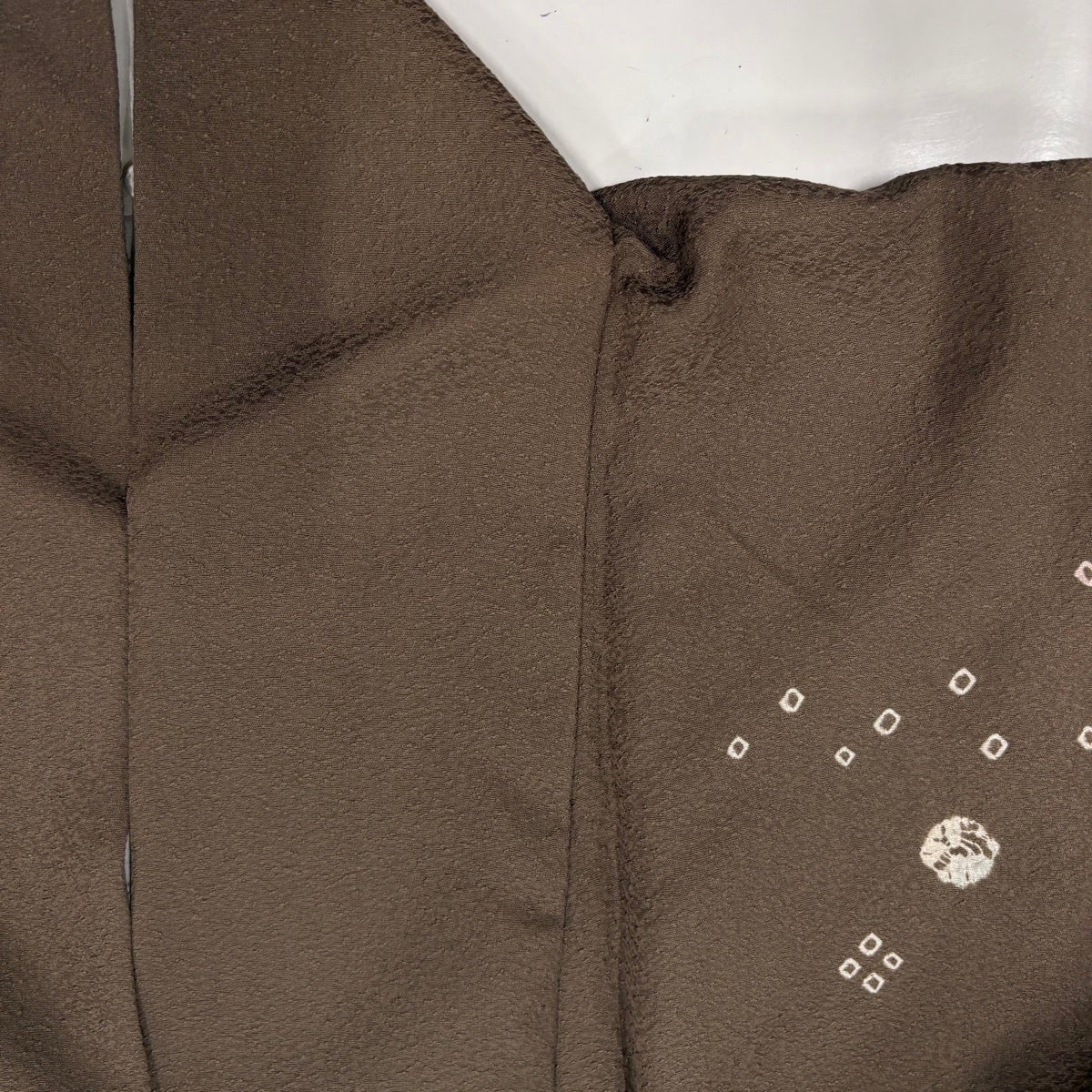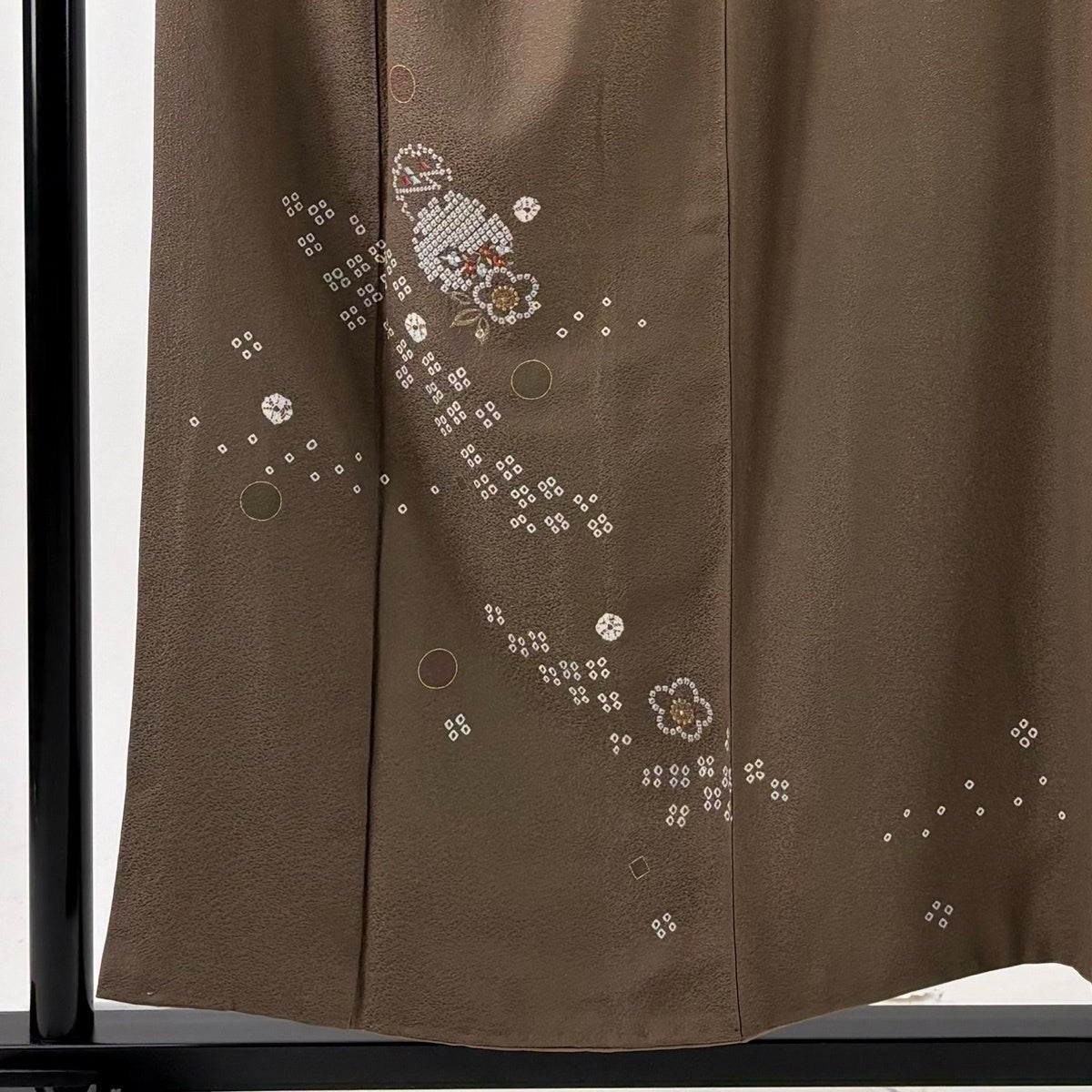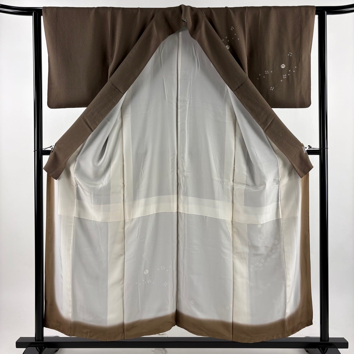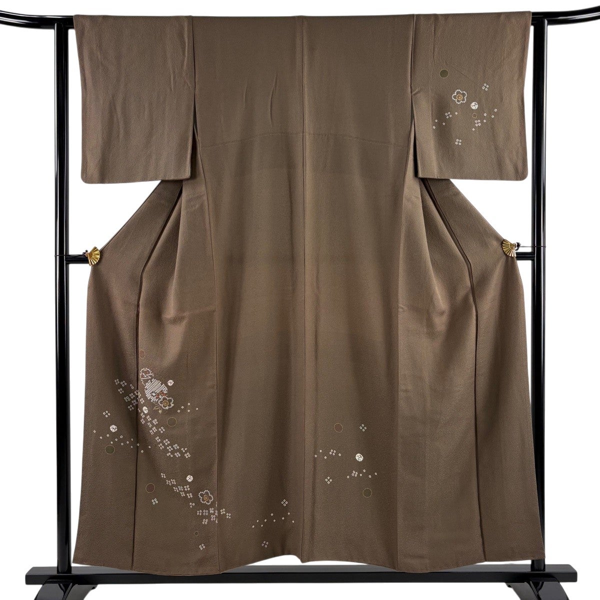 付下げ 身丈173cm 裄丈69cm L 袷 扇 草花 刺繍 ぼかし 薄茶色 正絹 秀品