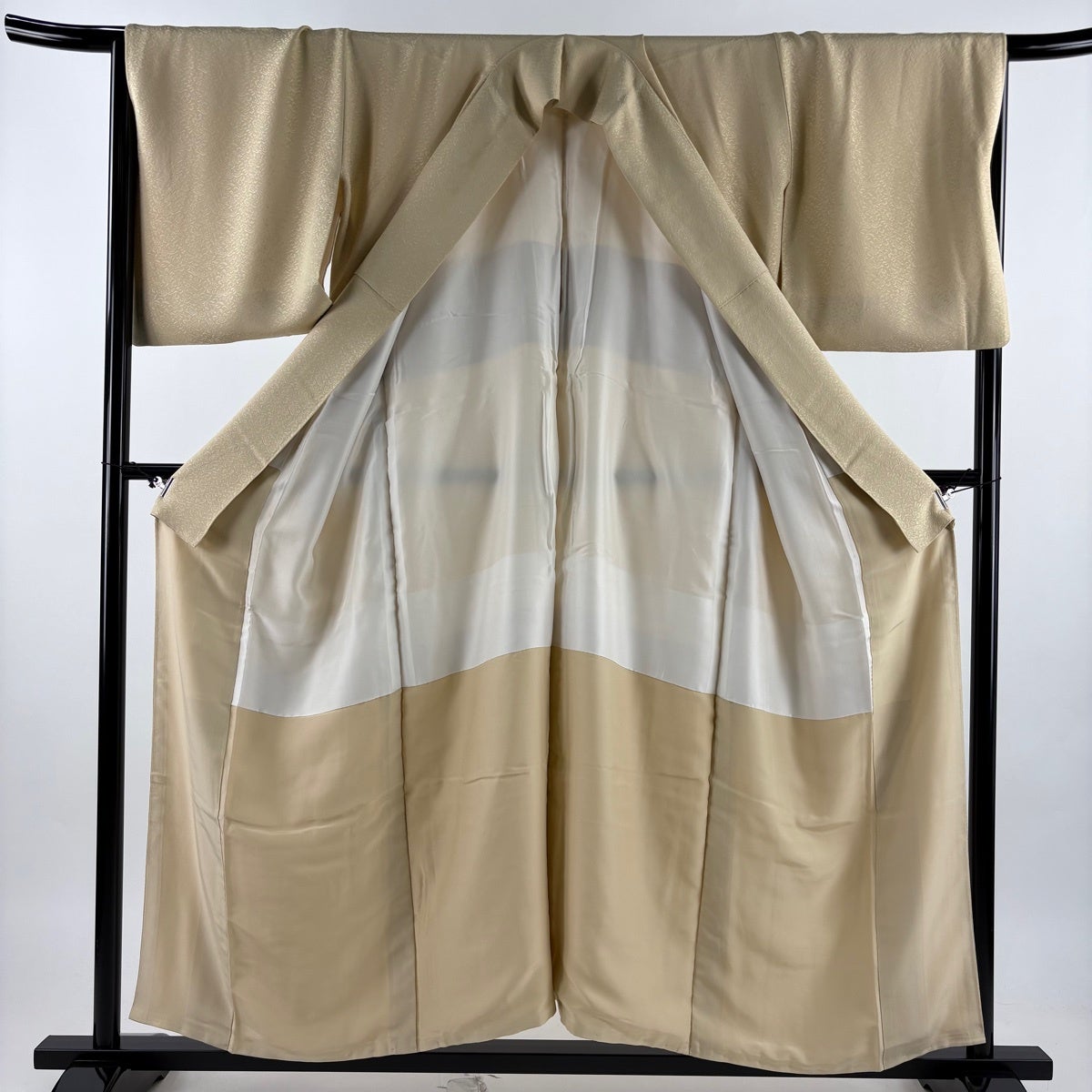 振袖 身丈159.5cm 裄丈62cm S 袷 御所車 桜 金糸 金彩 薄茶色 正絹 秀品