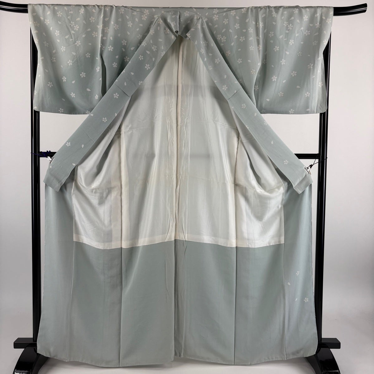 色無地 身丈157cm 裄丈65cm M 袷 源氏いろがさね 青灰色 正絹 秀品 一つ紋