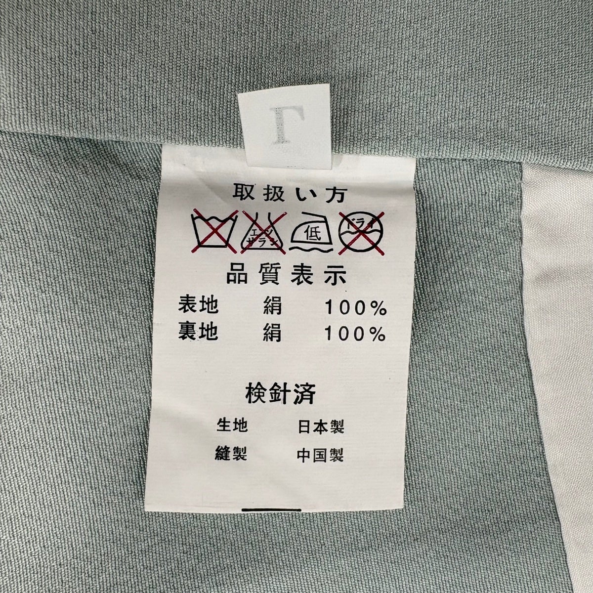 色無地 身丈158cm 裄丈63cm S 袷 鈴乃屋 落款あり 地紋 青灰色 正絹 優品