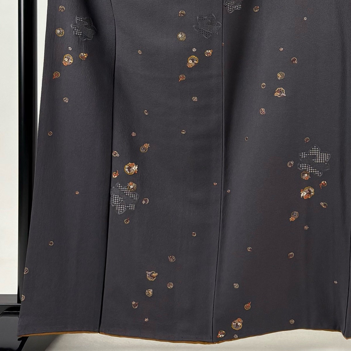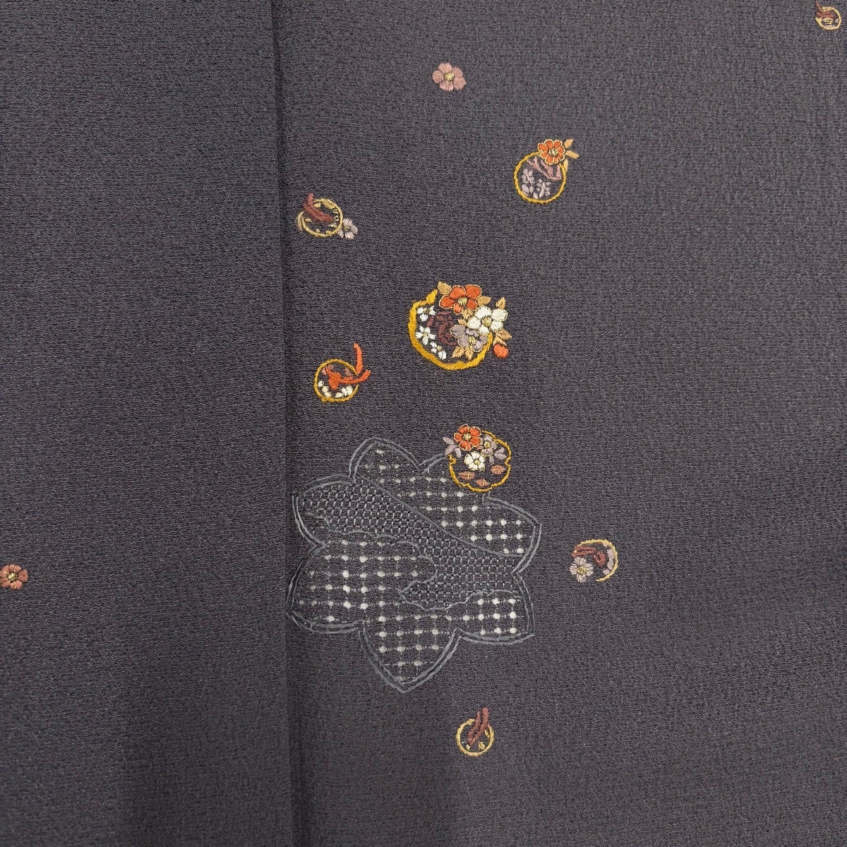付下げ 身丈159.5cm 裄丈66cm M 袷 花籠 霞 金糸 刺繍 灰色 正絹 秀品