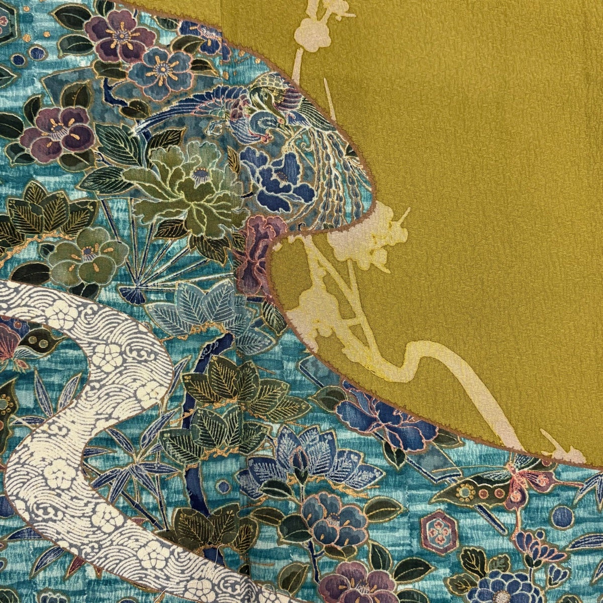 訪問着 身丈165cm 裄丈64cm M 袷 辻が花 銀通し 金彩 からし色 正絹 名品