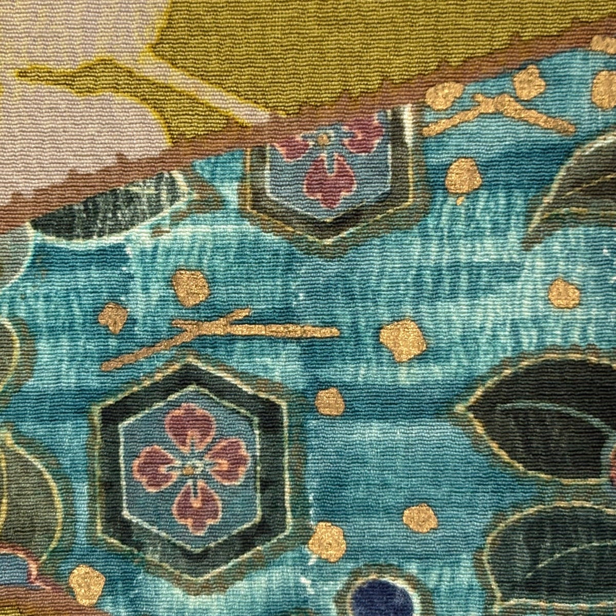 【美品】 小紋 身丈154.5cm 裄丈62cm S 袷 有職文様 花柄 緑 正絹 優品