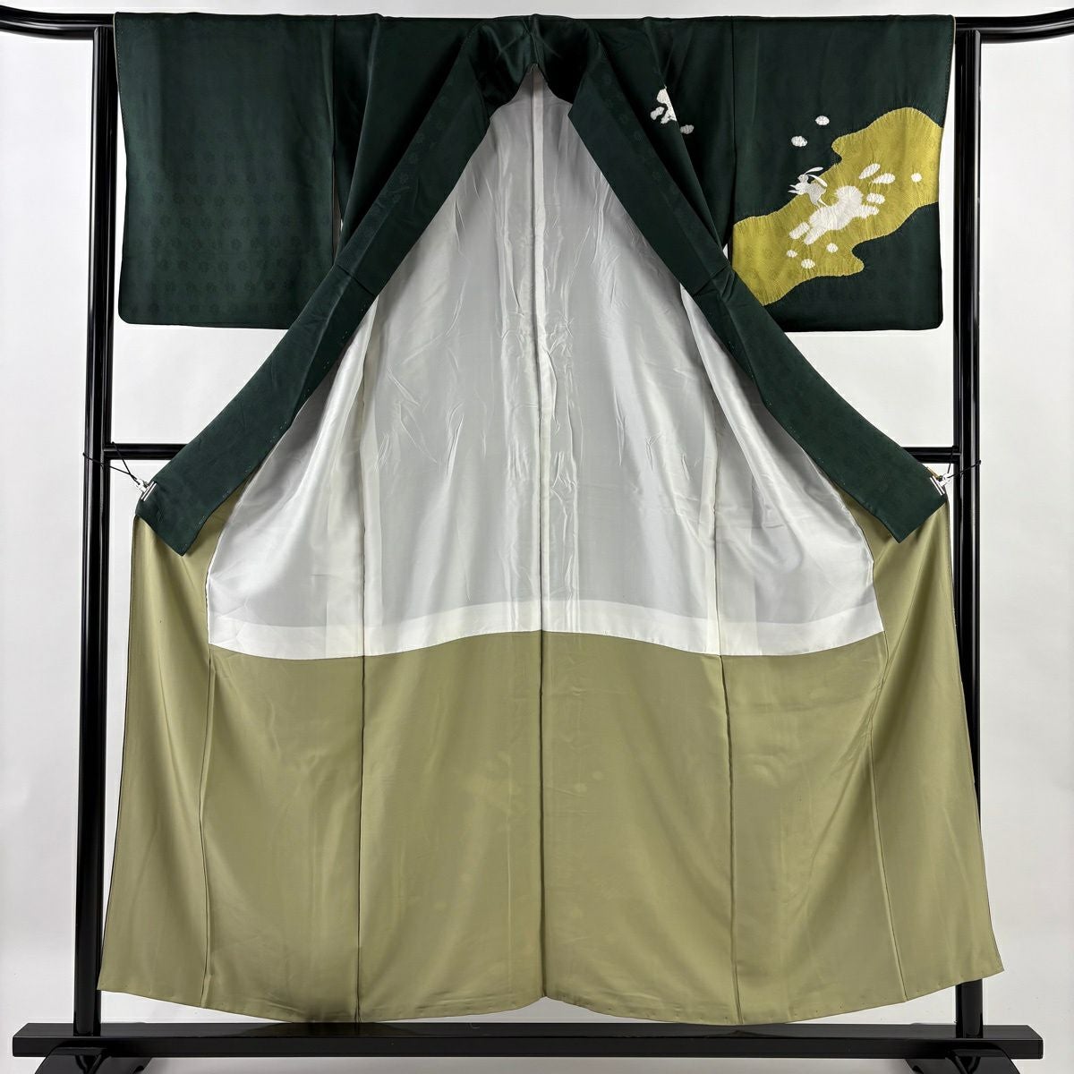 訪問着 身丈155cm 裄丈64cm M 袷 うさぎ 手鞠 刺繍 絞り 深緑 正絹 名品