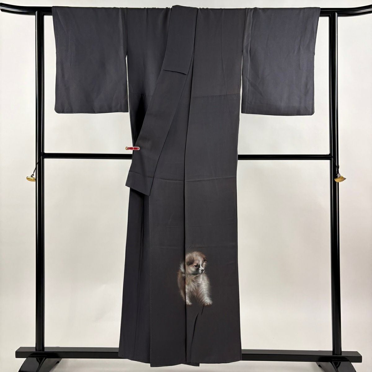 付下げ 身丈161cm 裄丈65.5cm M 袷 花びら 疋田柄 絞り 灰茶 正絹 秀品