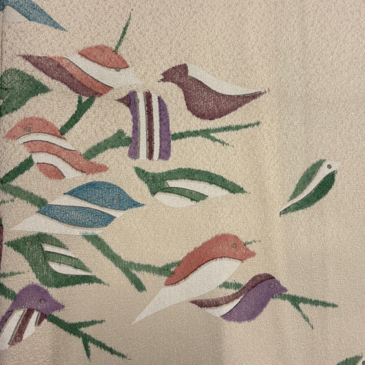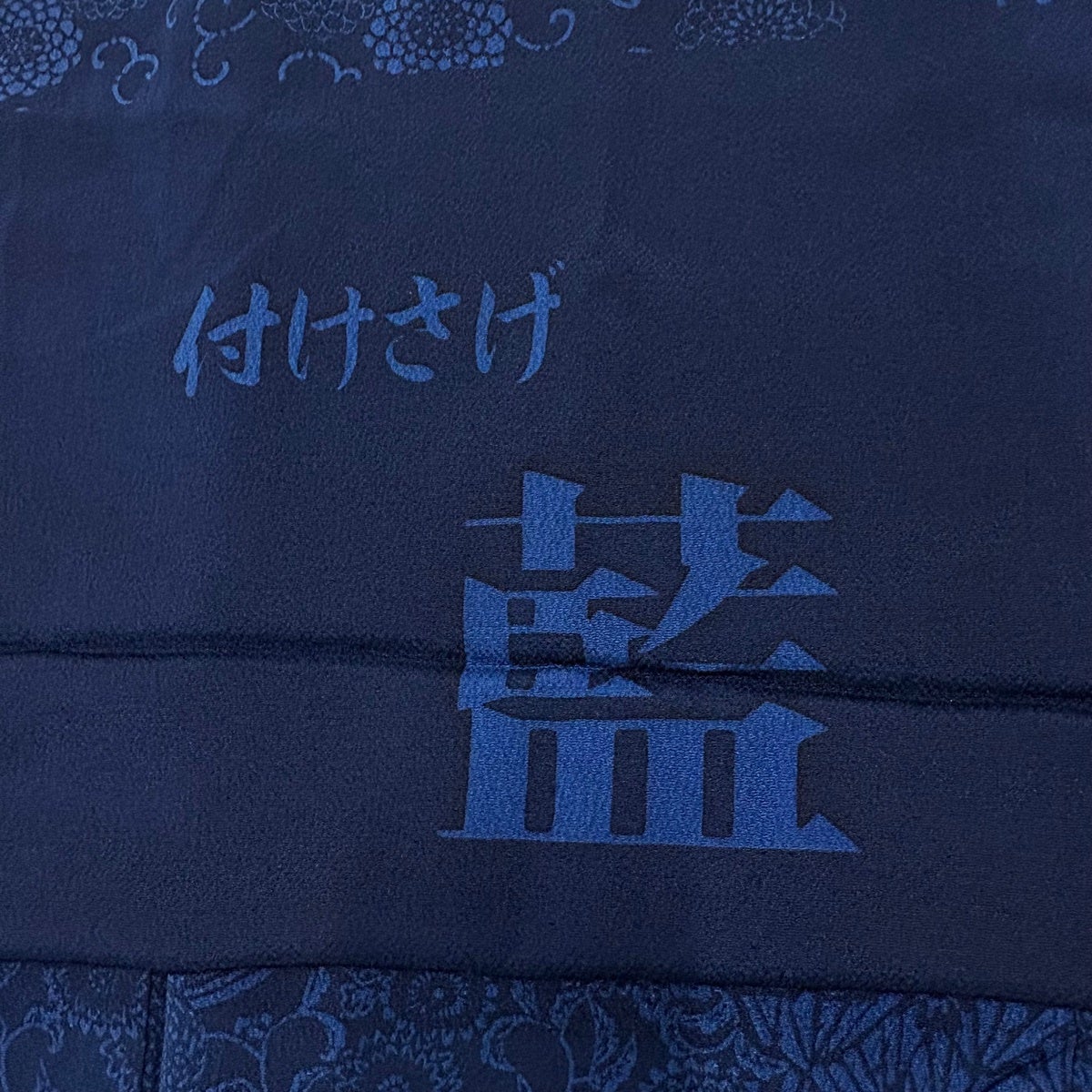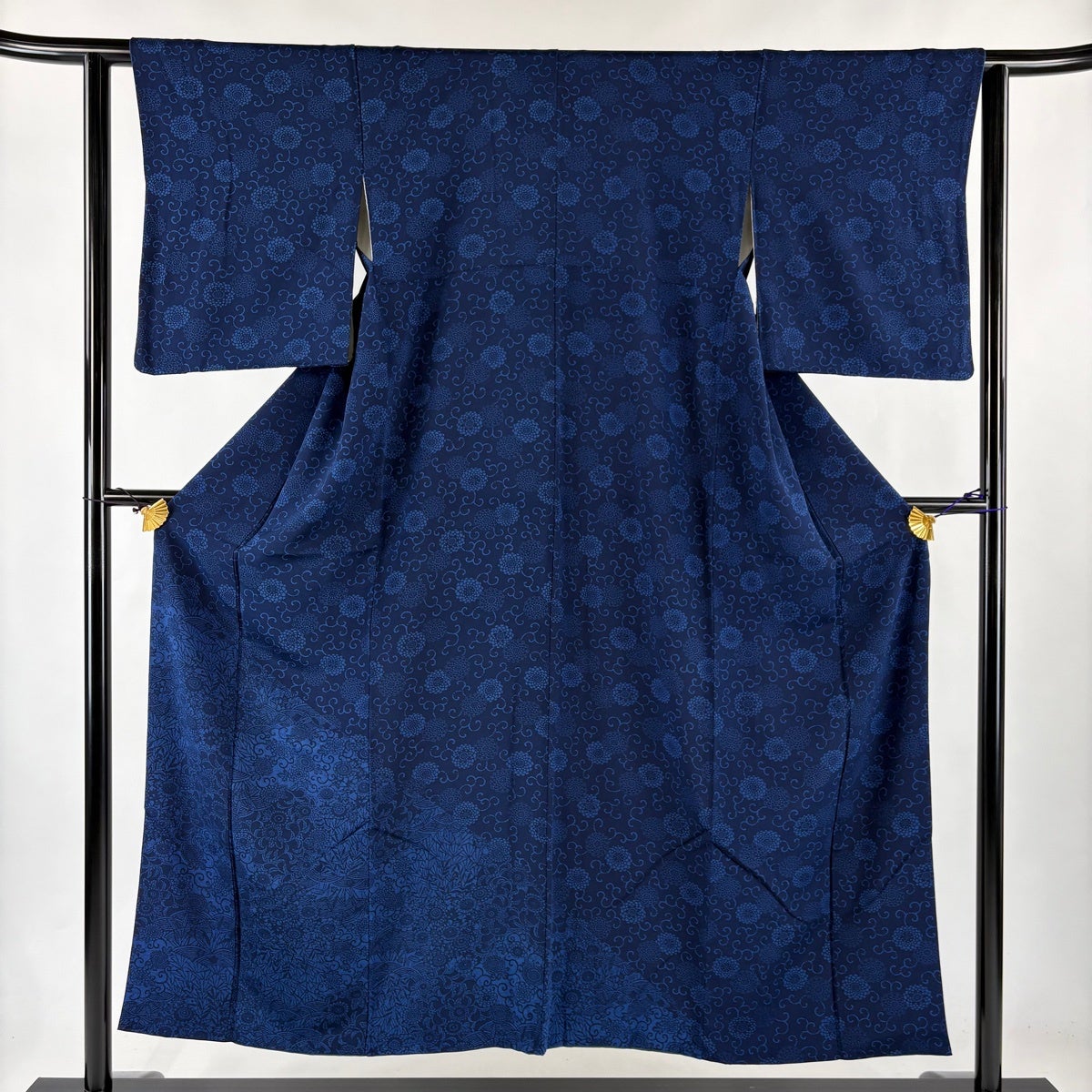 紬 身丈154.5cm 裄丈64cm M 袷 鳥 葉柄 紺色 正絹 優品