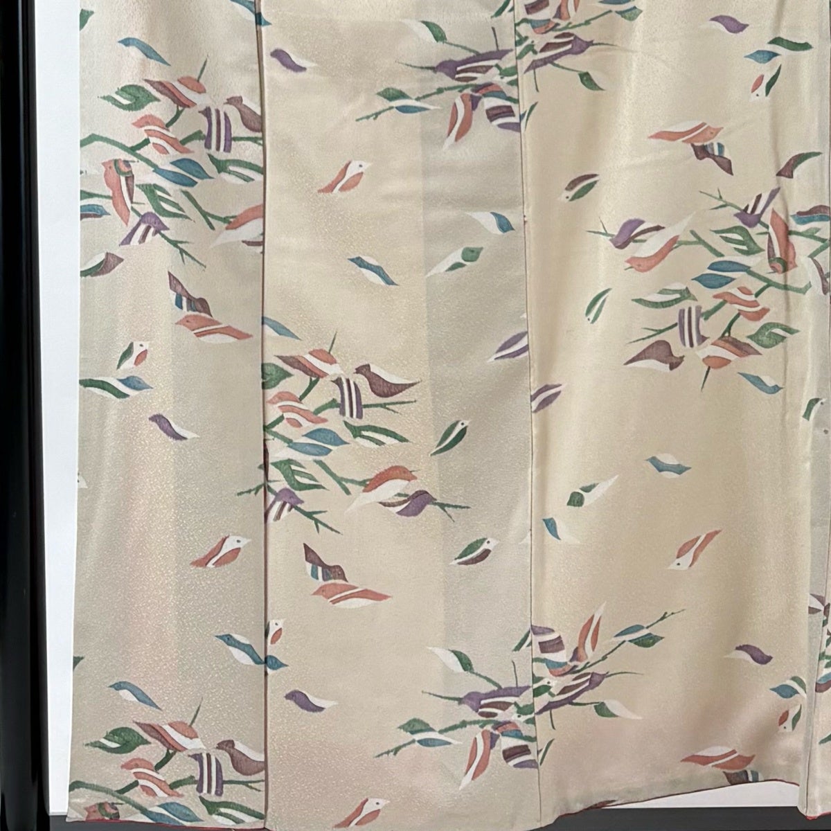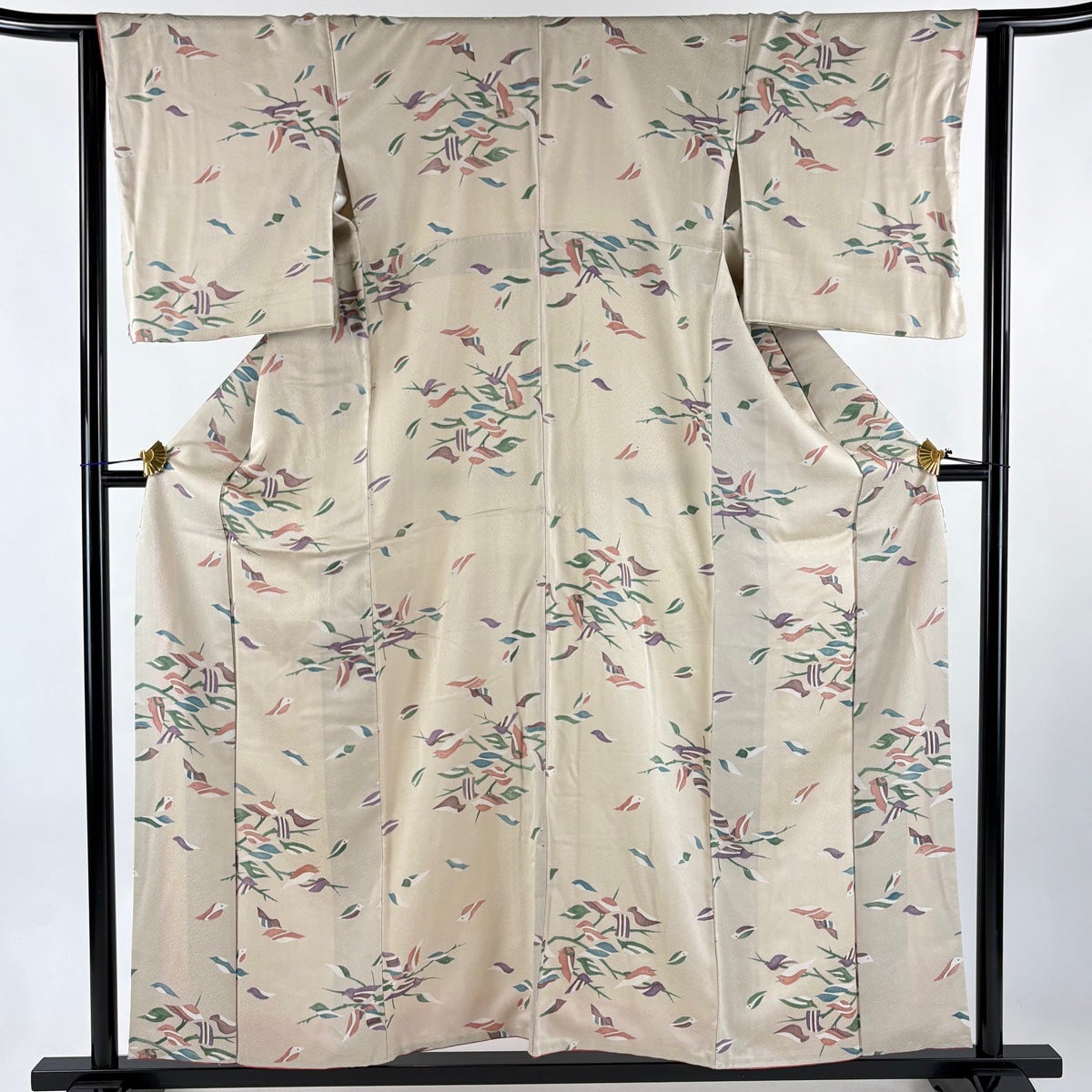 紬 身丈161cm 裄丈64cm M 袷 瓢箪 ベージュ 正絹 秀品