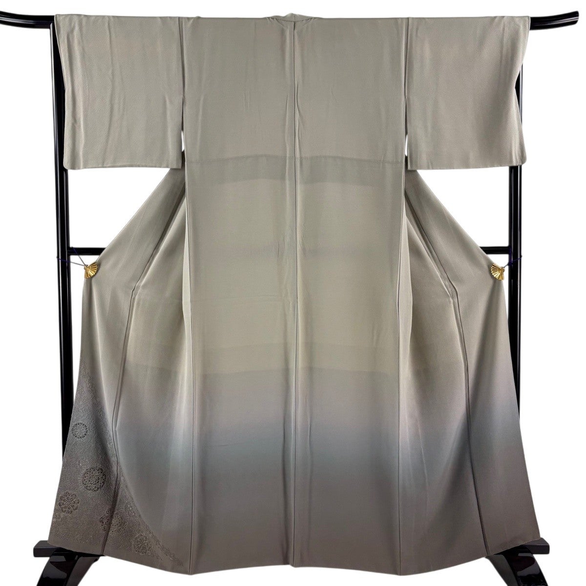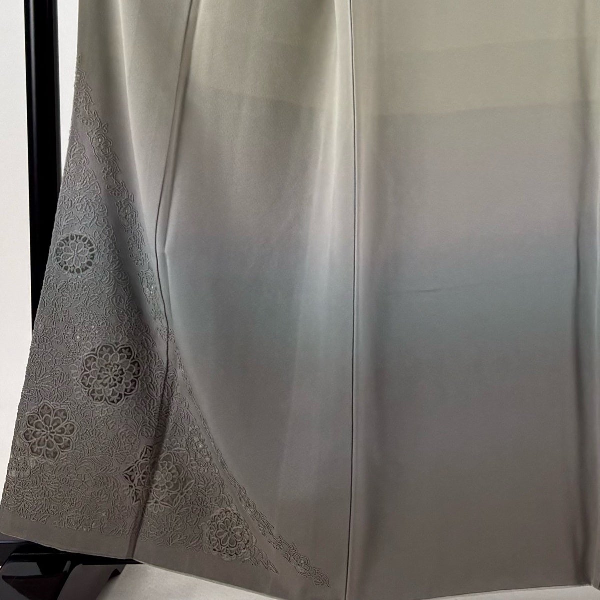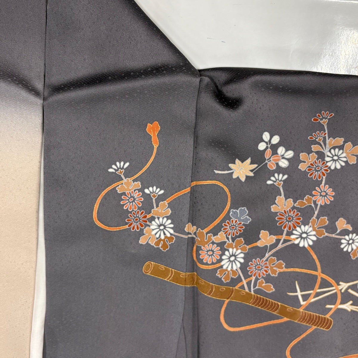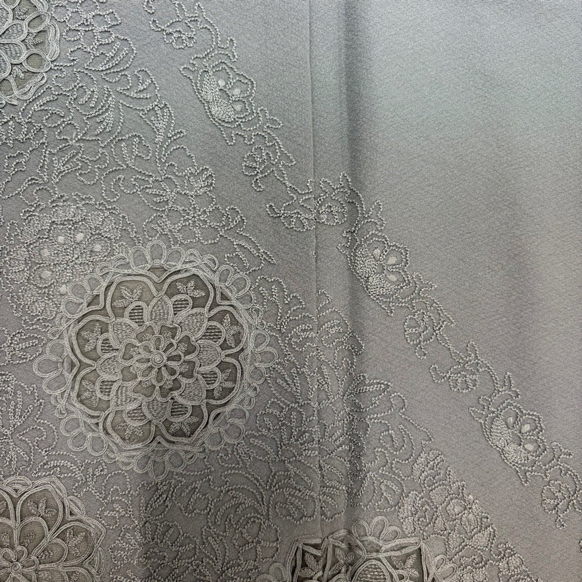 付下げ 身丈161cm 裄丈66.5cm M 袷 華文 草花 刺繍 ぼかし 灰色 正絹 秀品