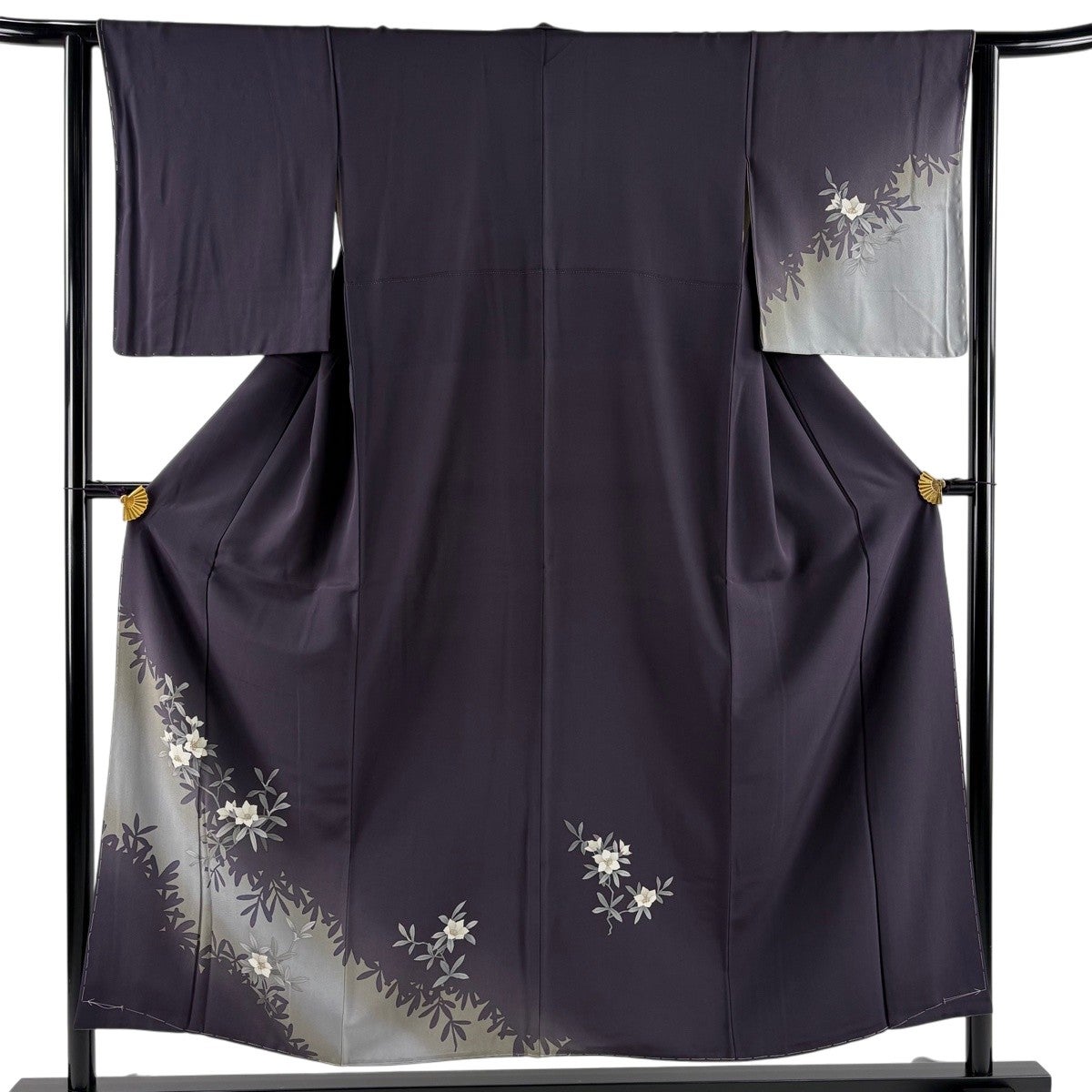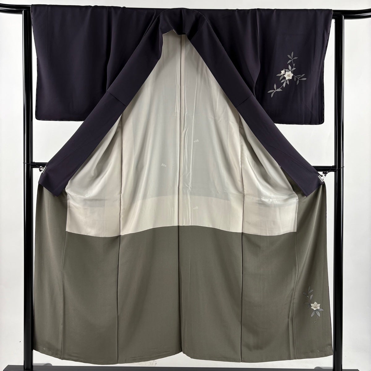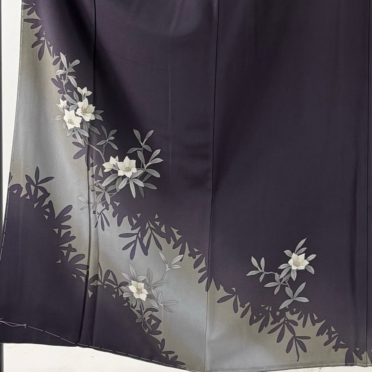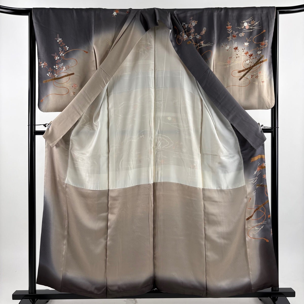 付下げ 身丈161cm 裄丈66.5cm M 袷 華文 草花 刺繍 ぼかし 灰色 正絹 秀品