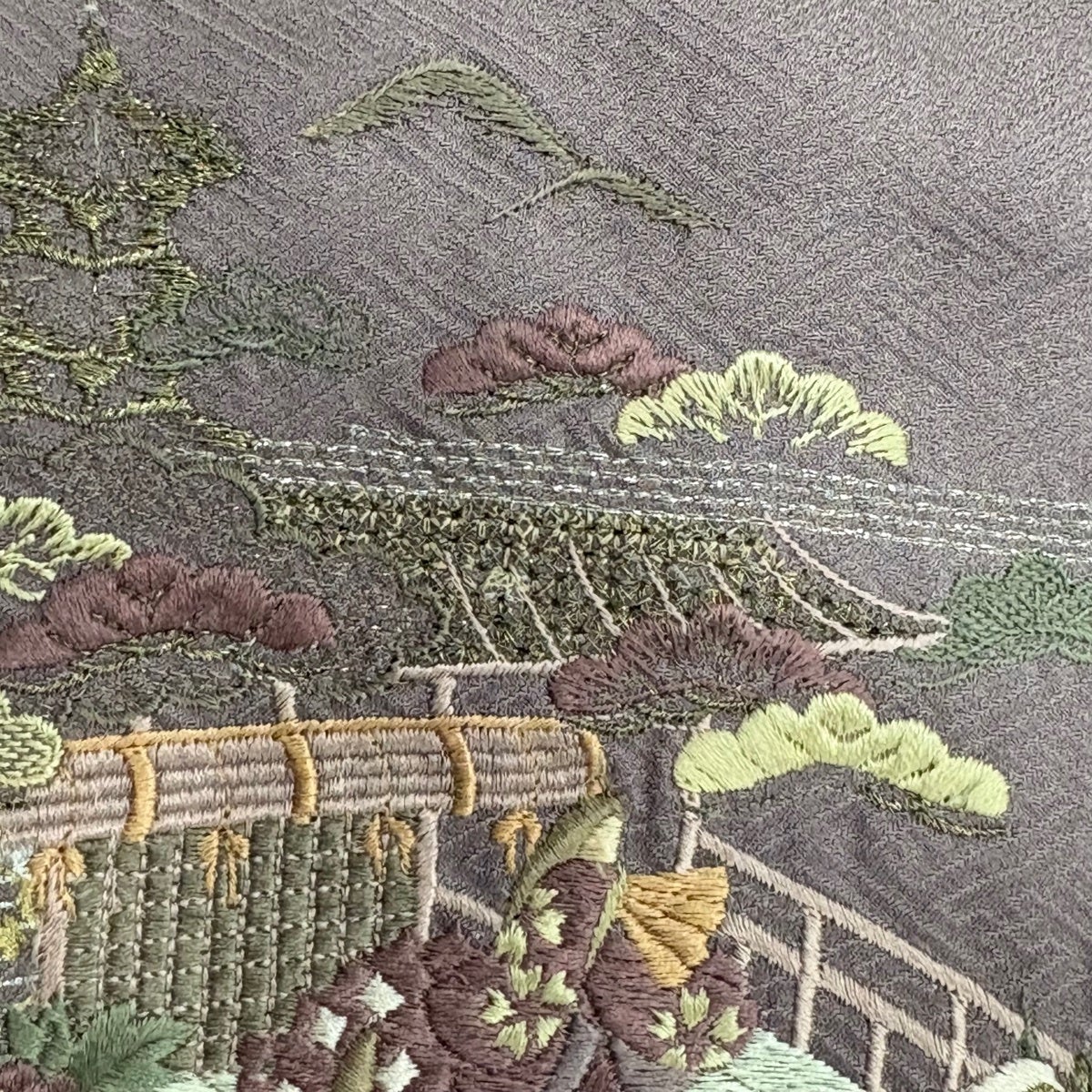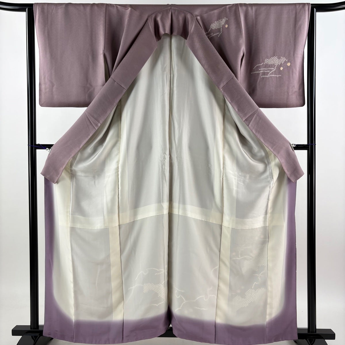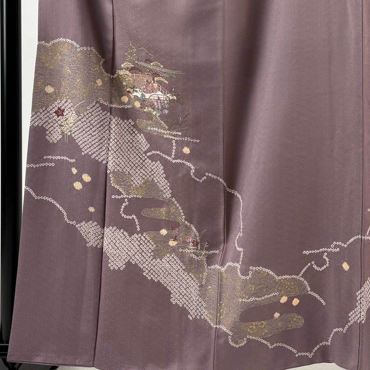 付下げ 身丈160.5cm 裄丈63.5cm S 袷 建物 草花 刺繍 金銀彩 薄紫 正絹 秀品