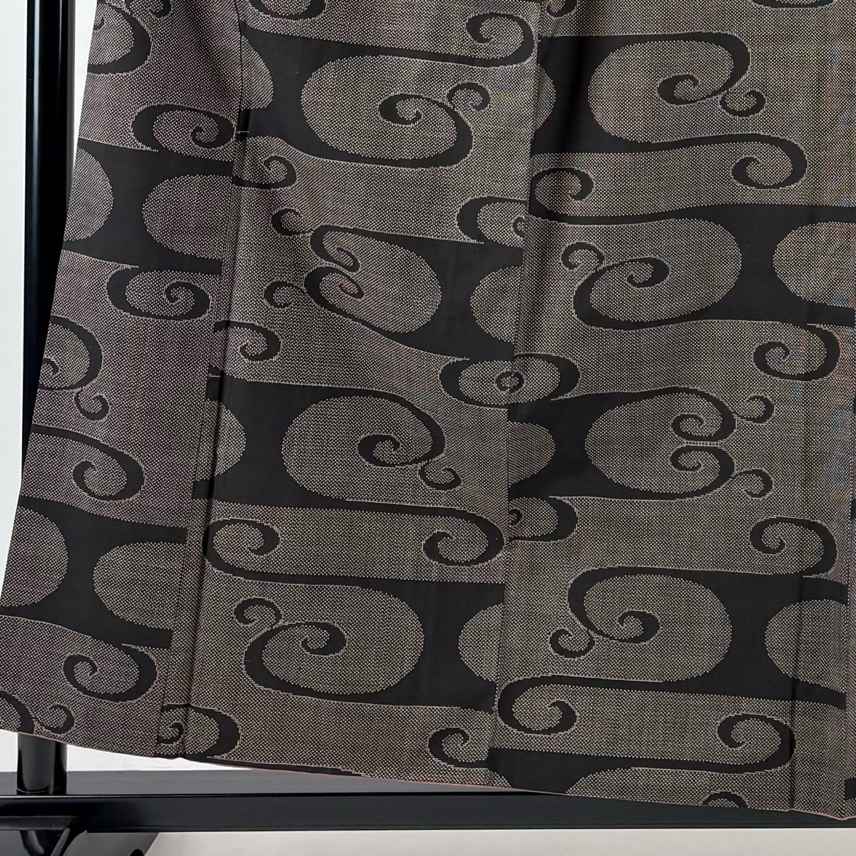 【美品】 紬 身丈160.5cm 裄丈66cm M 袷 袋帯セット 市松 焦茶色 正絹 秀品