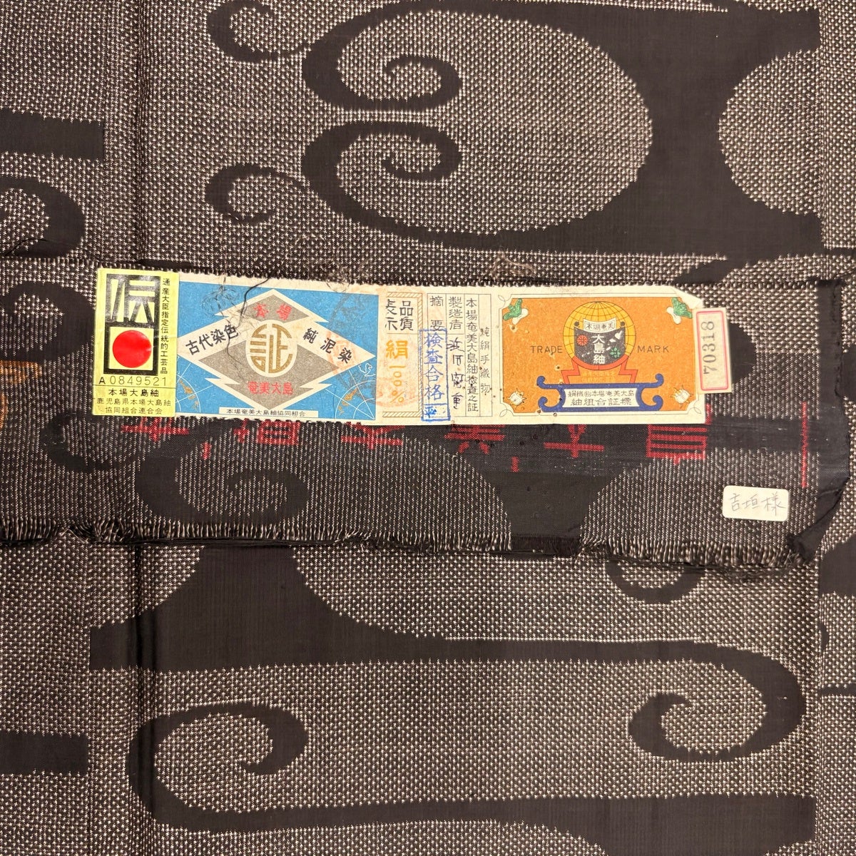 大島紬 身丈157cm 裄丈64.5cm M 袷 やまと 証紙あり 葉と実 濃紺 正絹 秀品