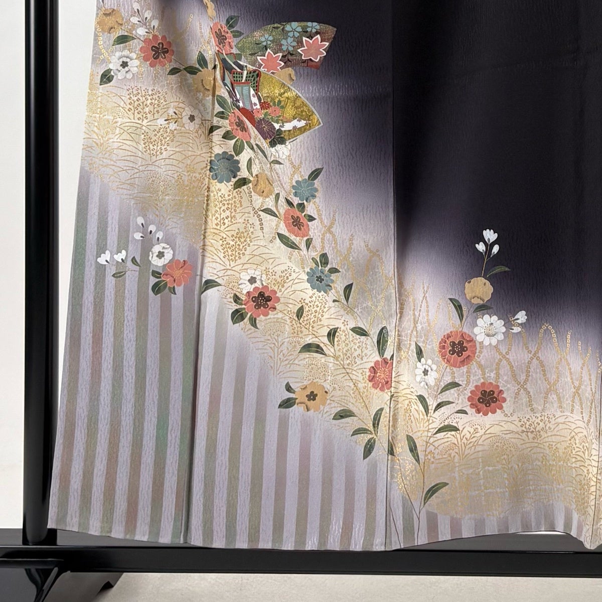 訪問着 身丈159cm 裄丈64.5cm M 袷 鬘帯 秋草 金彩 ぼかし 灰色 正絹 秀品