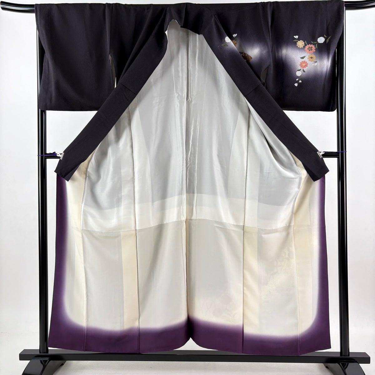 【美品】 振袖 身丈164cm 裄丈67cm M 袷 草花 星 刺繍 銀通し 黒 正絹 逸品