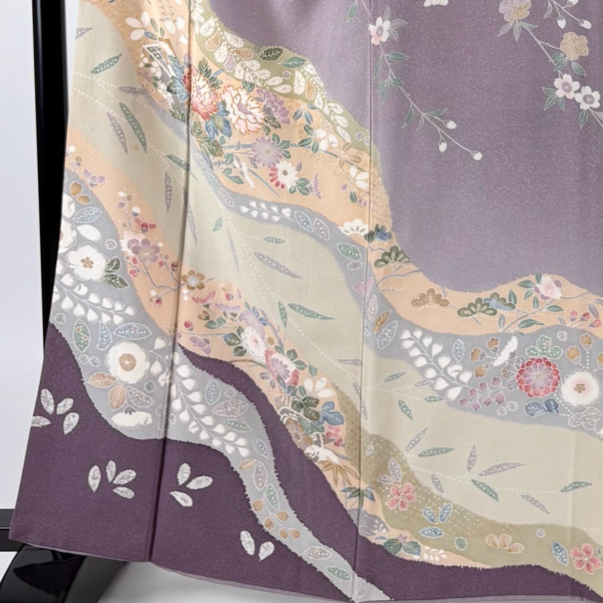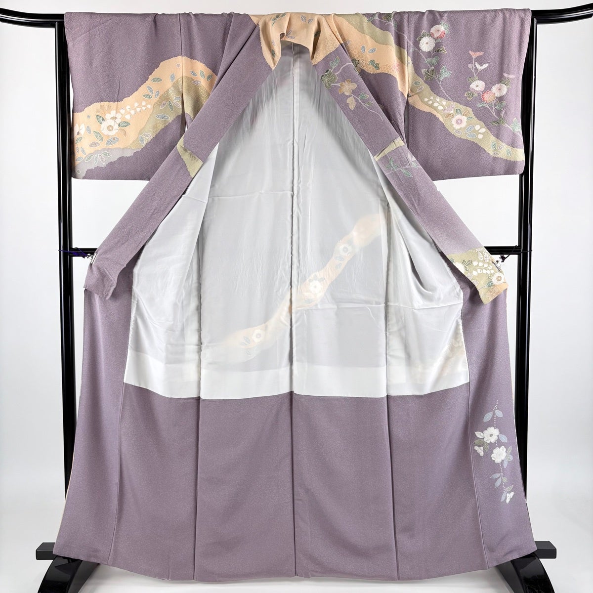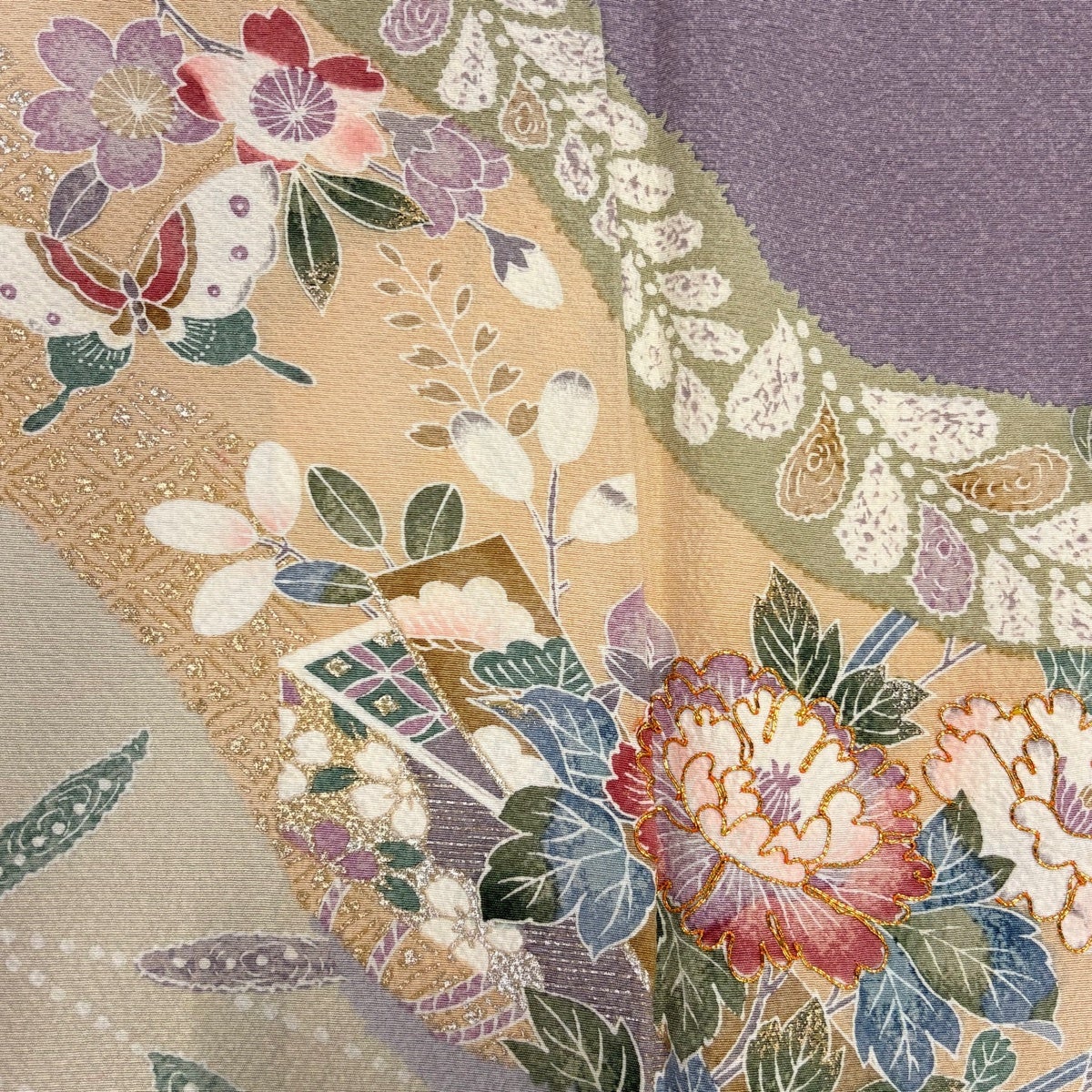 訪問着 身丈164.5cm 裄丈65.5cm M 袷 道長取 草花 金糸 金銀彩 薄紫 正絹 秀品