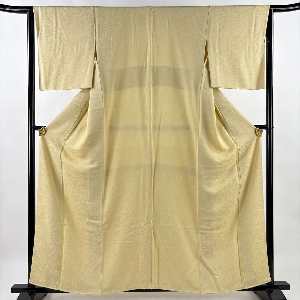 色無地 身丈153.5cm 裄丈63cm S 袷 地紋 鶯色 正絹 秀品