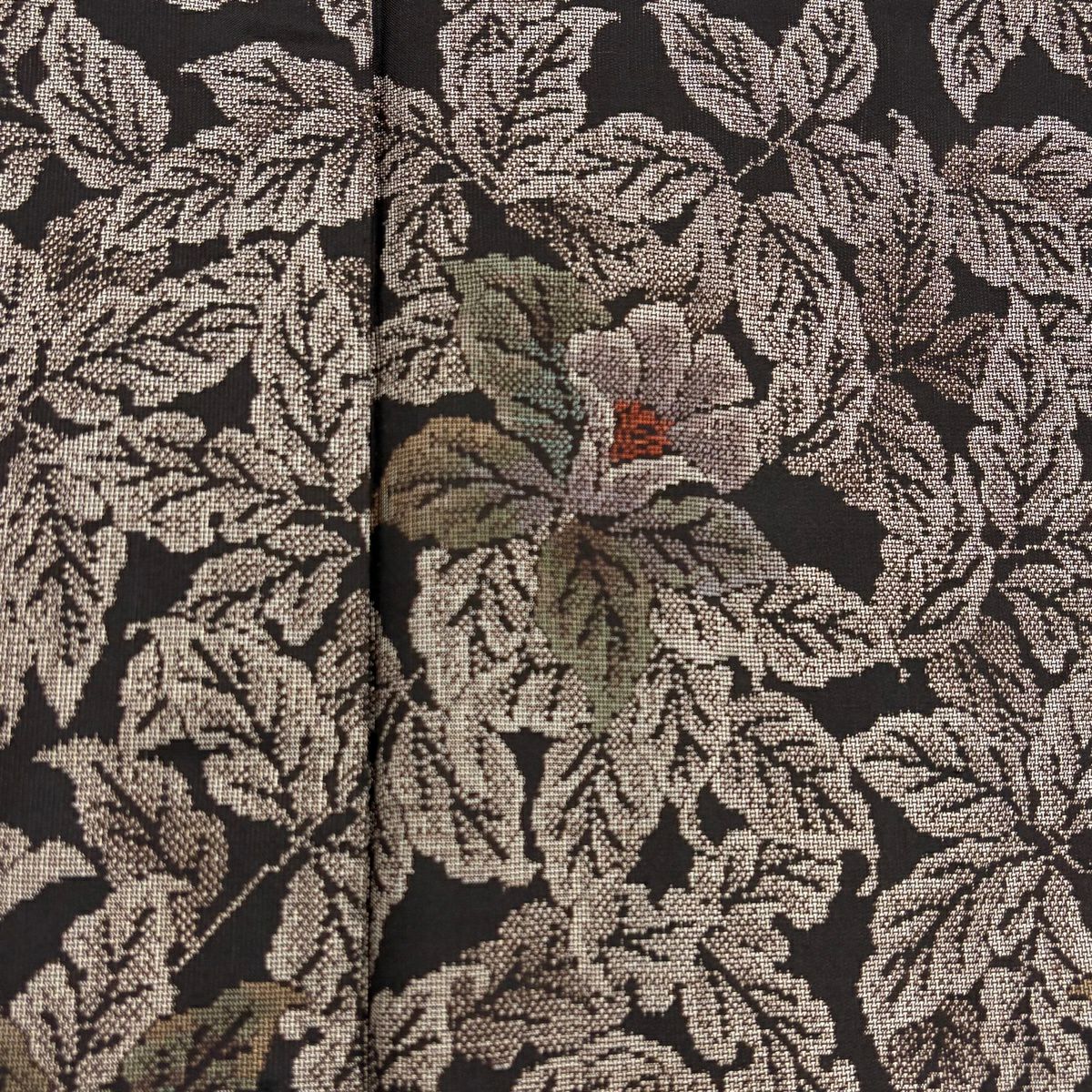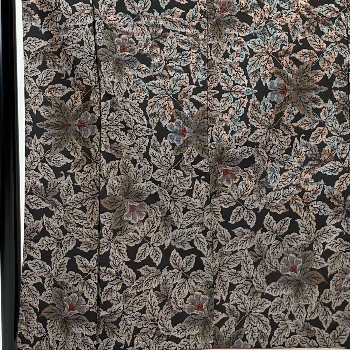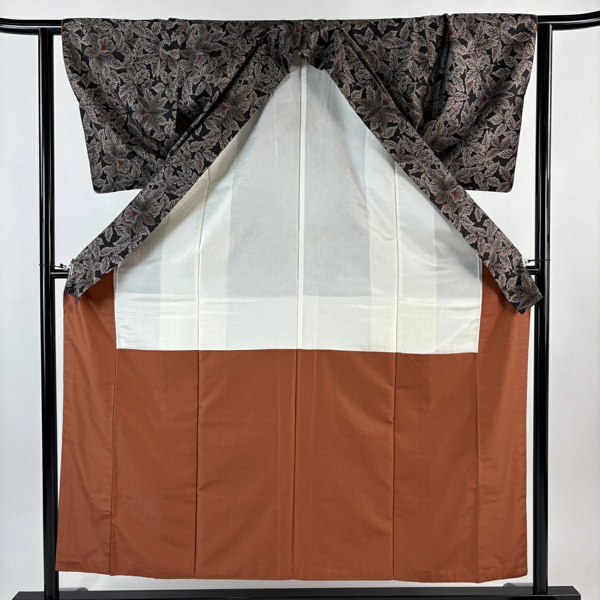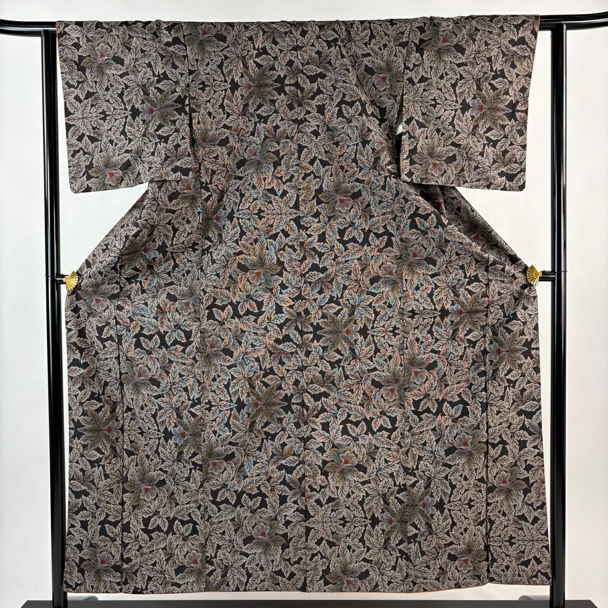 紬 身丈156.5cm 裄丈62cm S 袷 草花 墨色 正絹 優品
